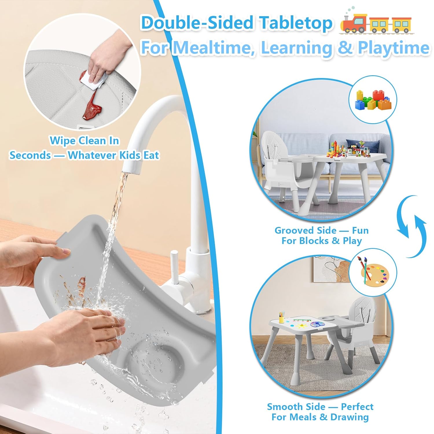 - [Versatile 6-in-1 Functionality] Grow with your child with our convertible highchair, transforming into a full-sized baby highchair, dining booster seat, floor chair, padded toddler chair, kids' learning table & chair, and even a building block table & chair. One chair meets all your needs as they develop.