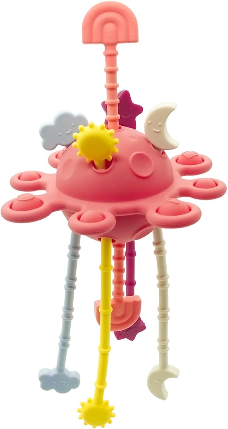 - 【Safe, Silicone Teething Toy】: Made from BPA-free, food-grade silicone, this montessori toys for 1 year old is soft, chewable, and provides soothing relief for teething. This sensory toys helps babies develop their chewing skills in a safe and enjoyable way, making this montessori pull string toy an ideal choice for exploring different textures. With this toy, you can avoid the worry of your baby chewing on things like data cables