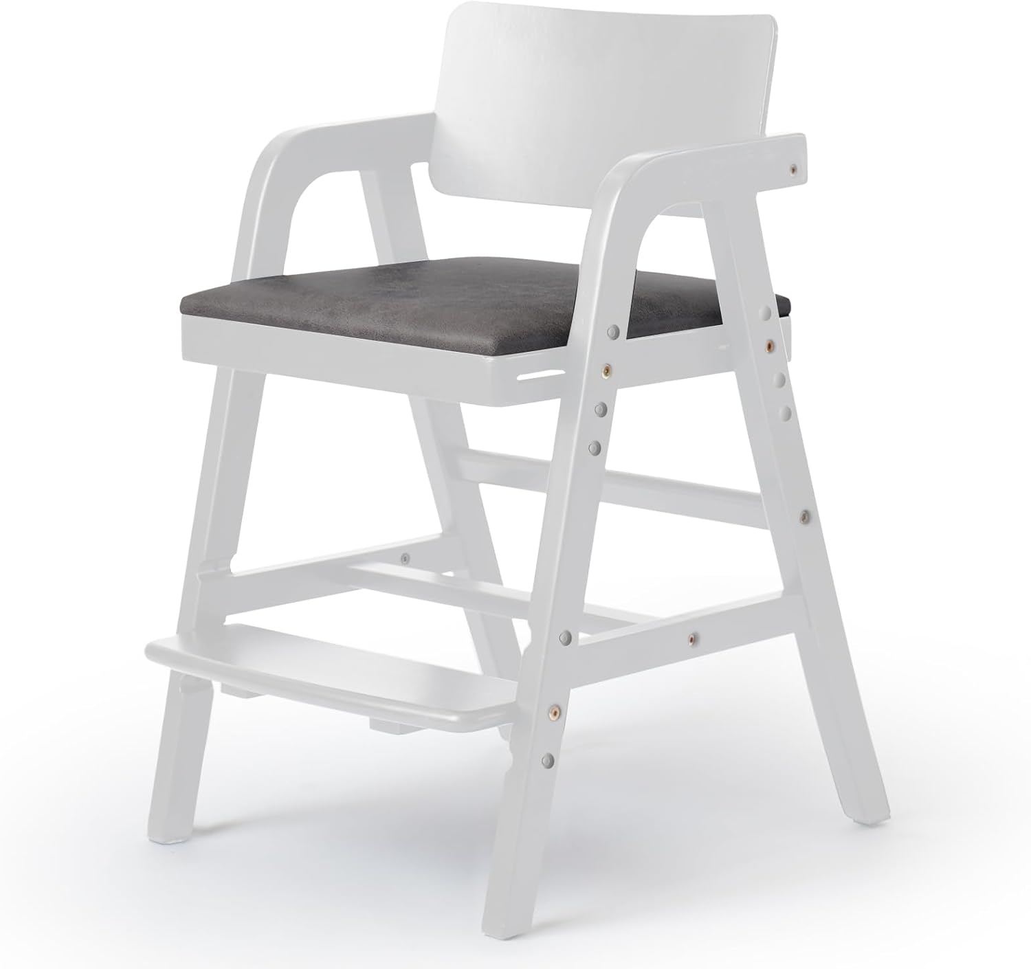 - One Chair for Many Years: Adjustable high chair with adjustable foot rest, one wooden high chair for Toddlers to Teens. 4 position seat height and 3 footrest adjustable suitable for 2-13 years old child. The height of seat is adjustable to match different table height. Foot rest is adjustable and child can put their feet on it for support. You don't need to purchase another highchair for your kids as they grow up