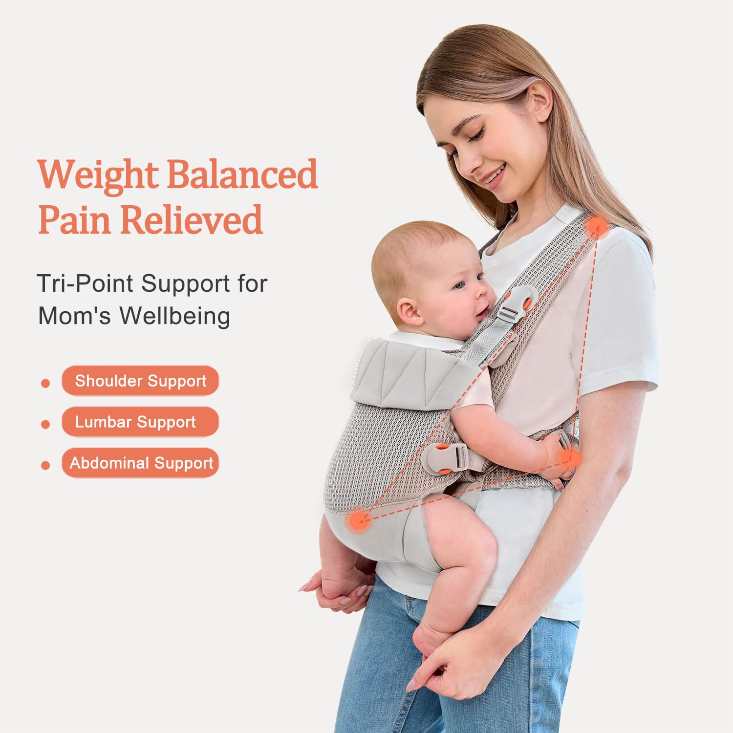 - UNPARALLELED COMFORT: Experience ultimate comfort and support with our baby carrier. Its waist belt offers essential lumbar support and alleviates back strain, promoting a balanced, snug carry for both you and your baby