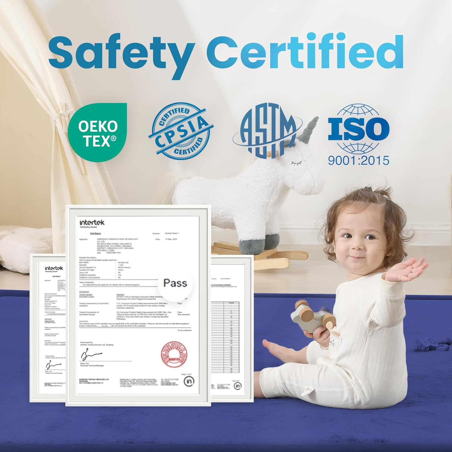 - Safety Certified & Fall-Proof Protection: Made with OEKO-TEX certified fabric and CERPITUR-US certified elasti-foam, this anti-fall mat meets ASTM/CPSIA safety standards, providing a soft barrier to prevent baby from rolling off beds or furniture. Perfect for bedside fall protection and safe sleep.