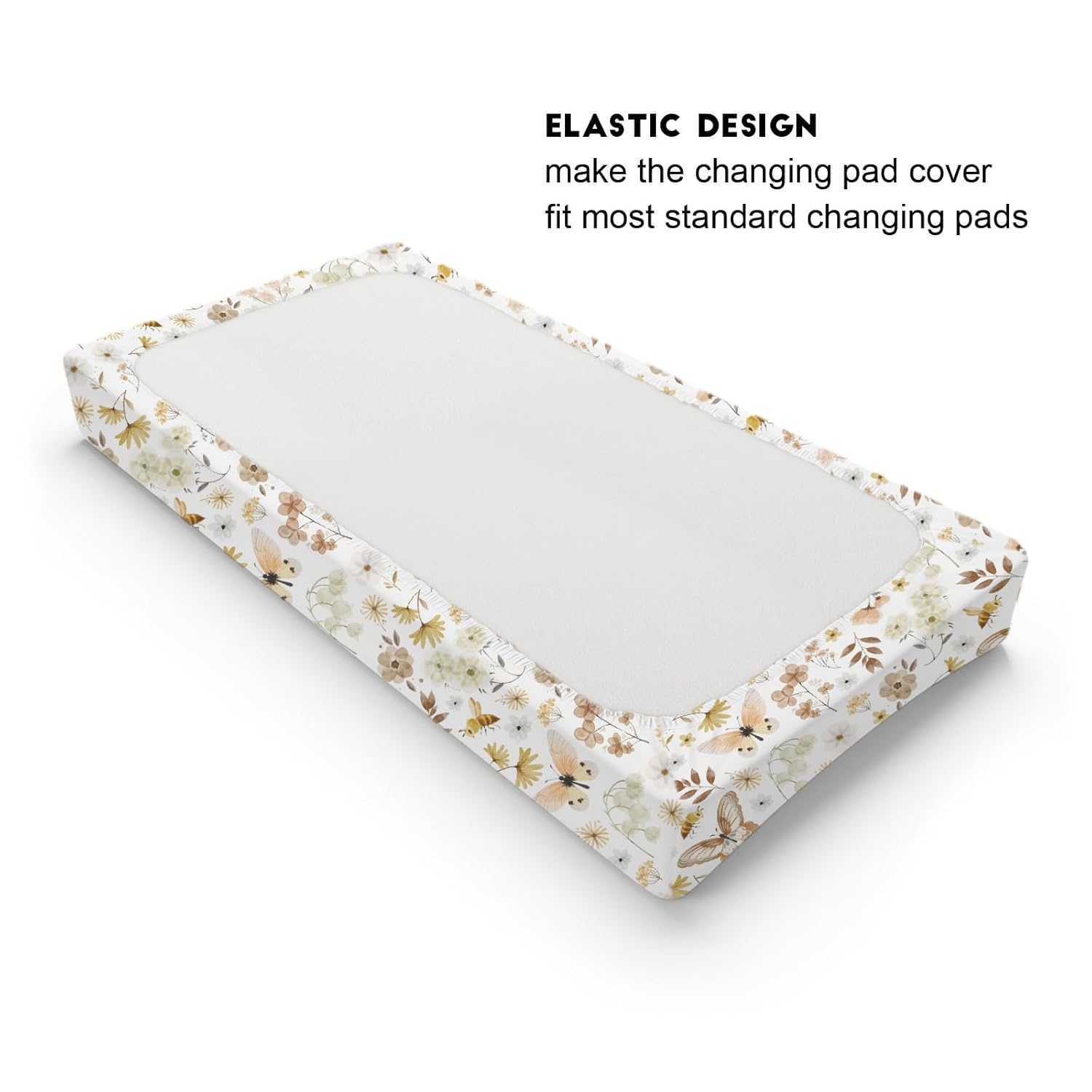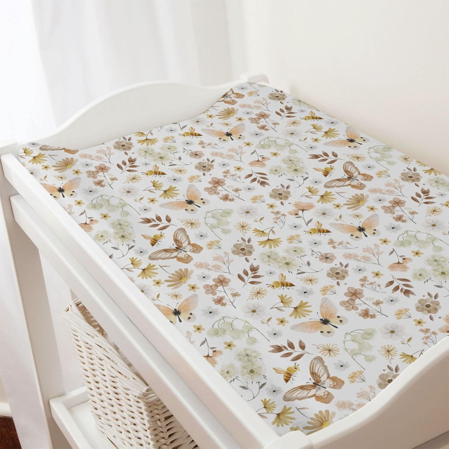 Vintage Butterflies Boho Wildflowers Baby Changing Pad Covers for Boy Girl 32''x16'' Watercolor Bees Butterflies Spring Floral Fitted Diaper Change Table Mats Soft Breathable Cradle & Bassinet Sheets