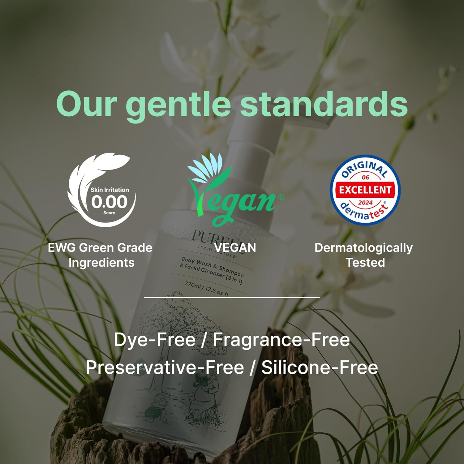 - PURELU 3-IN-1 BABY WASH & SHAMPOO: This tear-free formula combines body wash, shampoo and facial cleanser in one 12.5 fl oz bottle, gently cleansing baby's delicate skin and hair from newborn to 3 years old