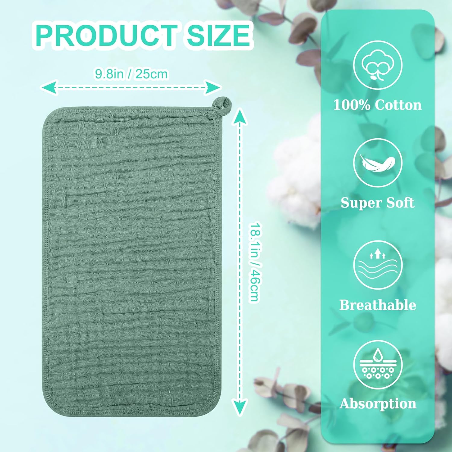- Multifunctional: Our muslin cloths are so versatile and can be used in a multitude of ways. Perfect for protecting your clothing when burping baby, wiping up sticky messes. Or as reusable baby cloths, wipes, baby face towels, body washcloths, changing mat covers and so on.