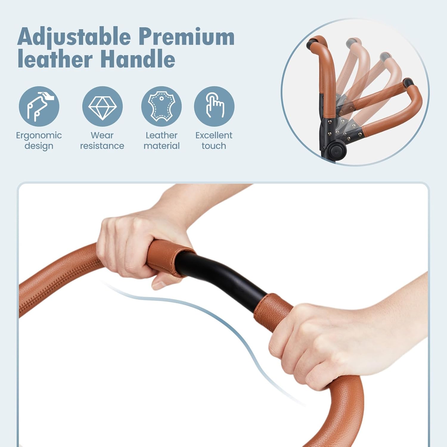 - Adjustable Ergonomic Handle: This handle has 10 different adjustable settings, which can be adjusted to fit the height needs of people. The handle is designed according to ergonomic principles and wrapped with high - quality leather, making it comfortable to hold, and won't get tired easily even if you use it for a long time