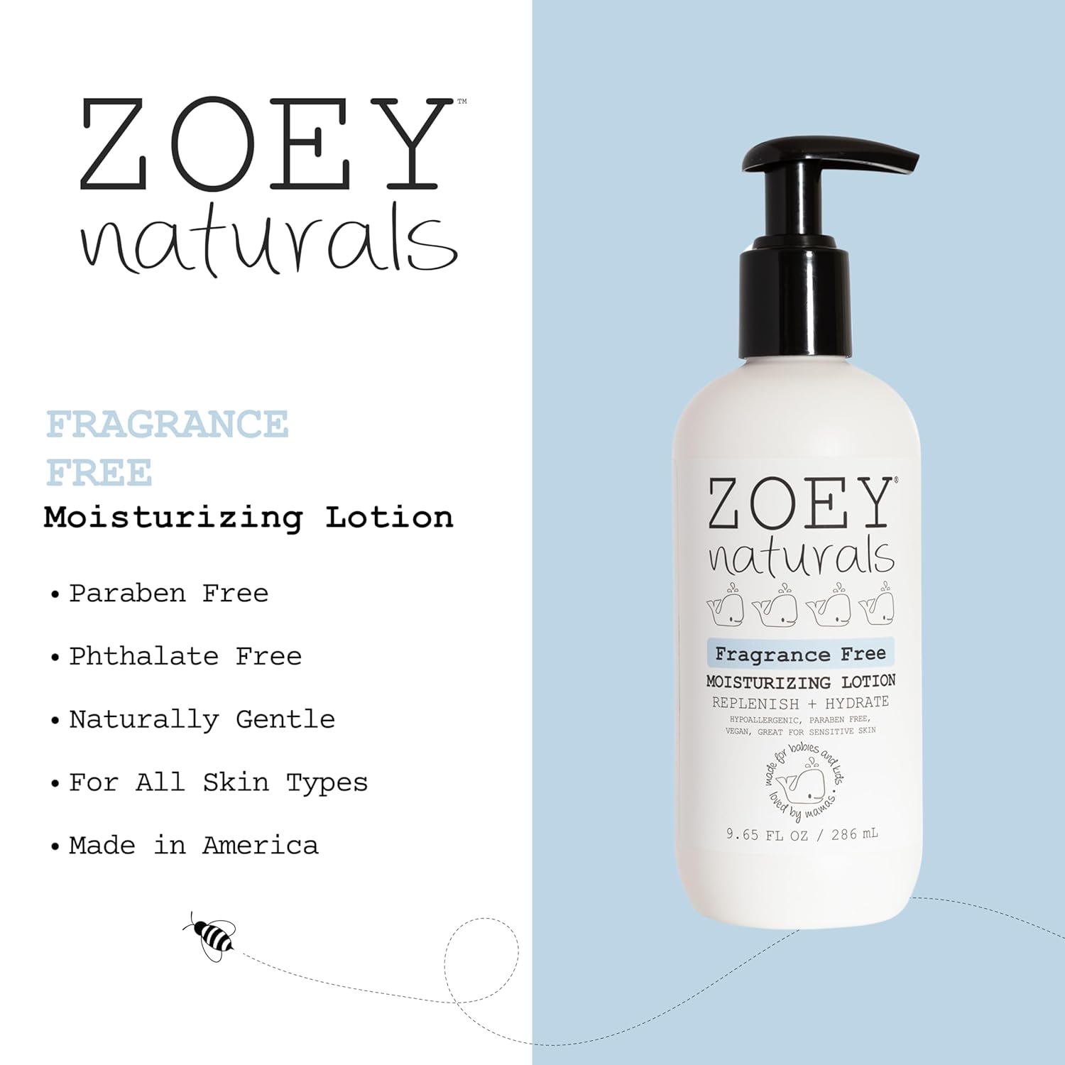 Zoey Naturals Fragrance-Free Baby & Toddler Lotion – Pediatrician and Dermatologist Approved - Hypoallergenic, Vegan, Moisturizer for Sensitive Skin – Non-Greasy, Paraben & Phthalate Free – 9.65 oz