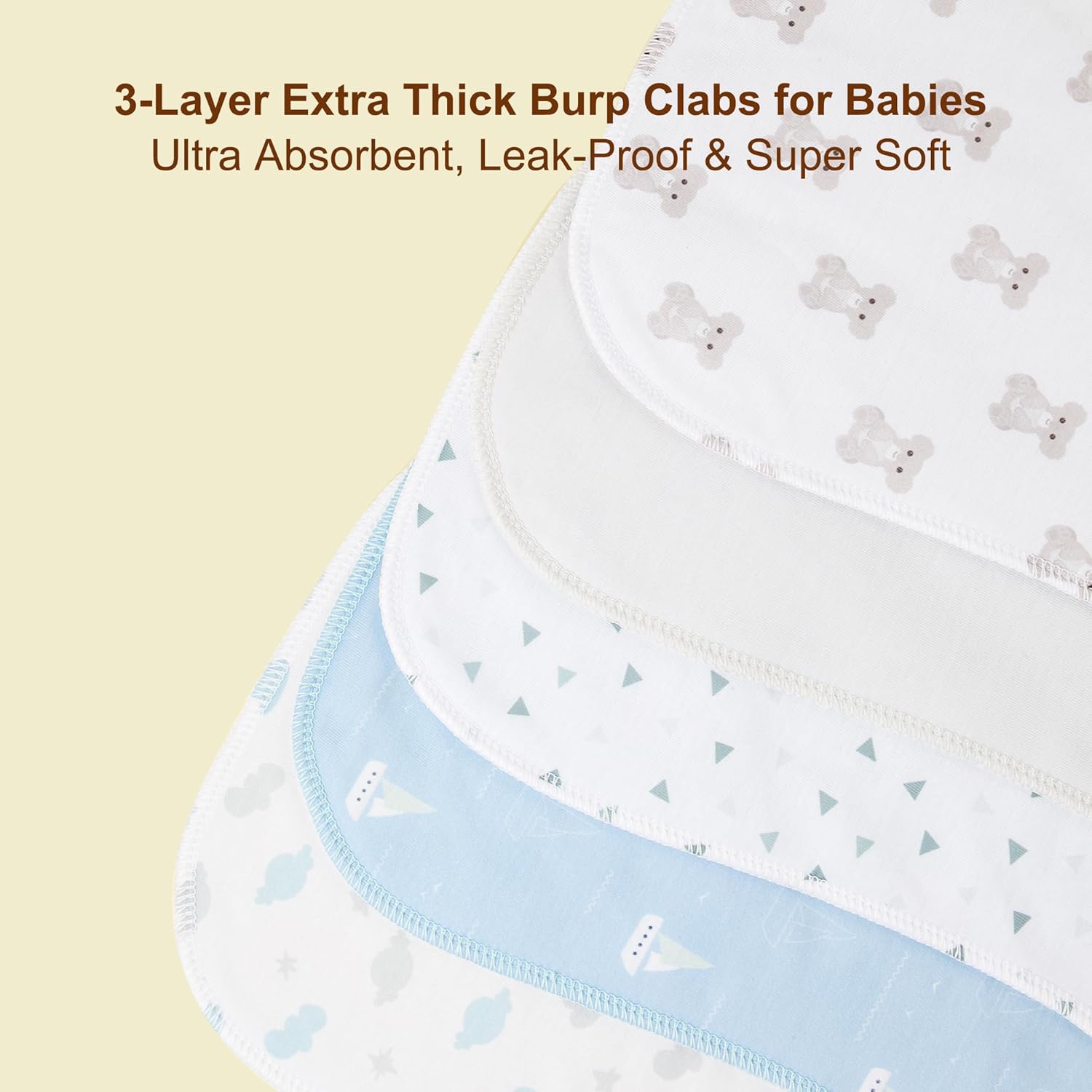 - 🌿 Ultra-Soft 100% Cotton & 3-Layer Absorbency Experience superior comfort and protection. Made with 100% natural cotton on the front and back for gentle touch on baby's skin, plus a super-absorbent polyester fleece middle layer. This 3-layer construction quickly soaks up spit-up and drool to keep your baby and your clothes dry all day.