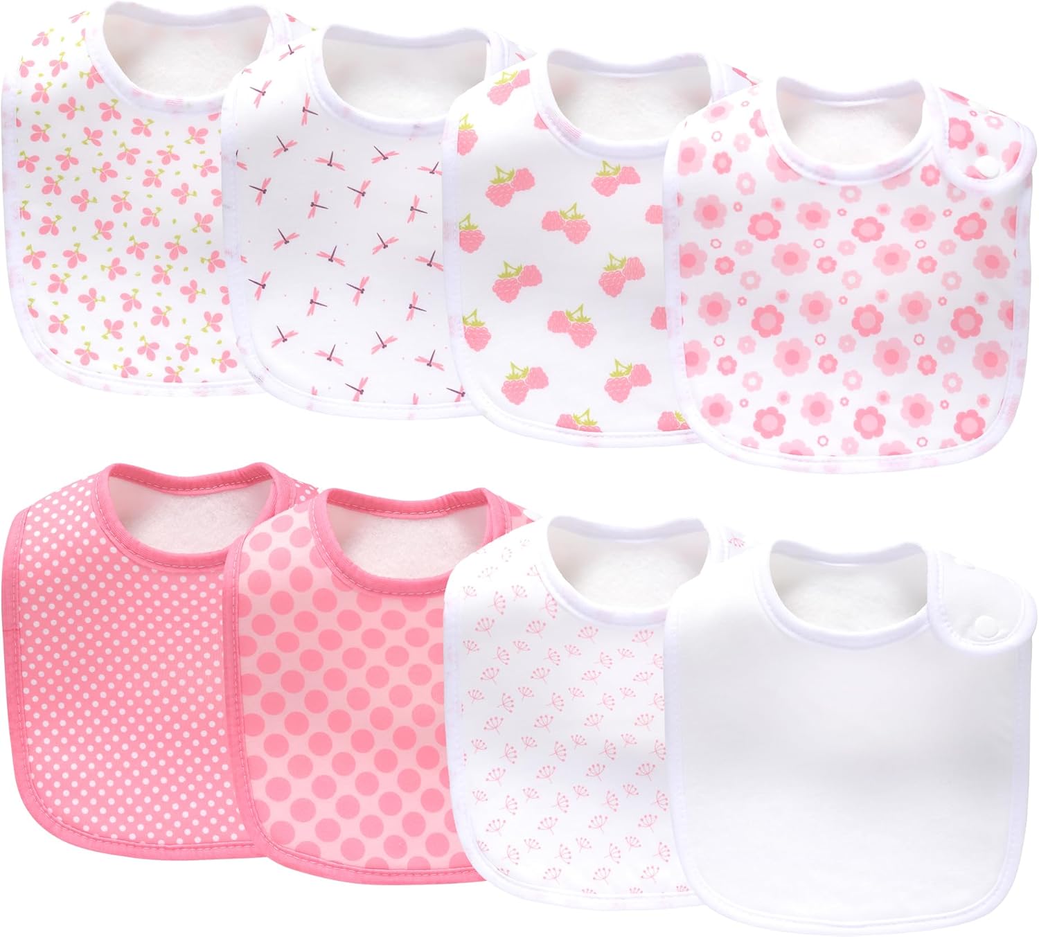 8 Pack Baby Bibs Unisex Adjustable with Snaps Ultra Soft Absorbent Drooling Teething for Boys and Girls