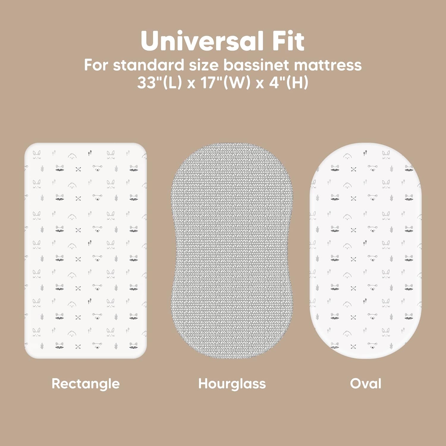 - 2-Pack Bassinet Fitted Sheets - KeaBabies Isla Bassinet Mattress Sheets, sized at 33" x 17" with a depth of up to 4", provide a universal fit for all bassinet mattress pad types. They can be used as hourglass, oval, rectangle bassinet sheets.