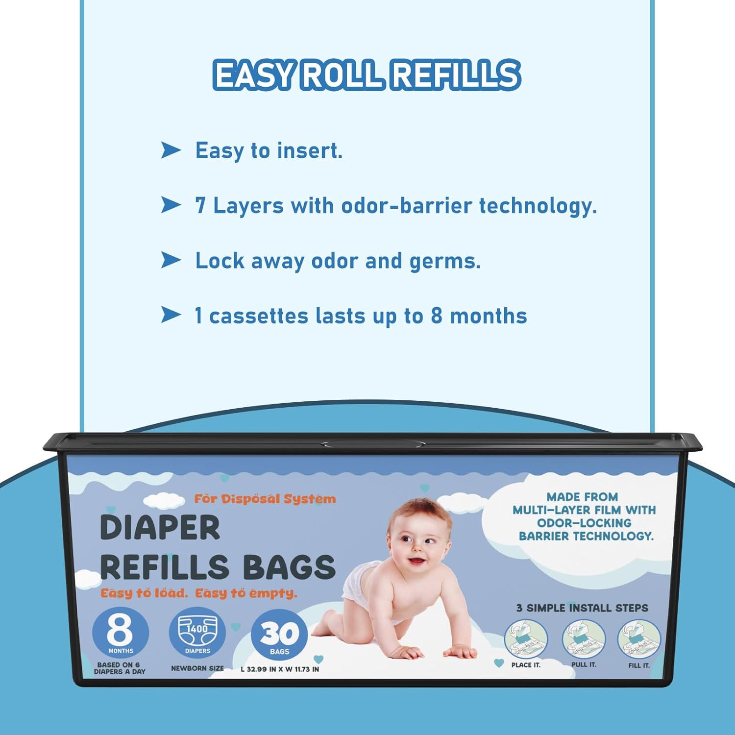 - Multi-layer Technology: Our 7-layer refills with odor barrier technology lock away odor. The innovative design and multi-layers with odor-barrier technology help to contain odors, keeping your home fresh and odor-free.
