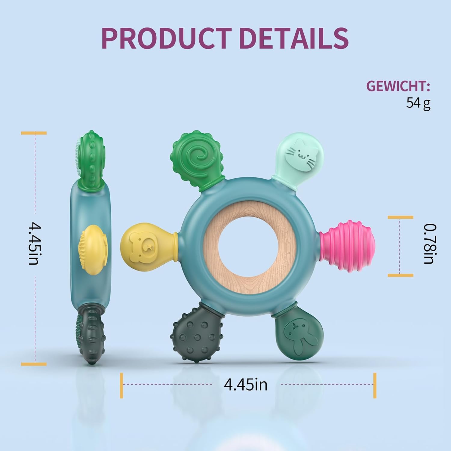 - EASY TO CLEAN: Our teething toys are easy to clean, simply wash with mild soapy water or boil to sterilize. Teething toys can also be stored in the fridge for extra cooling.(Note: the wooden ring can't be boiled, please remove it)