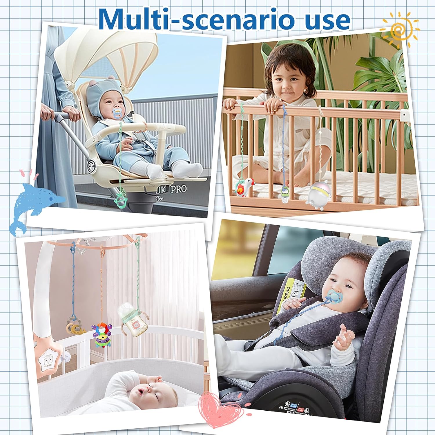 - Scope of Use: Baby toy straps can be used for strollers, baby high chairs, pacifier clips, teethers, car seat toys, baby sucking toys, and baby cribs. They can be taken out to play at any time, whether the baby is eating, crying, bathing, or traveling. Say goodbye to dropping and searching for misplaced baby essentials.