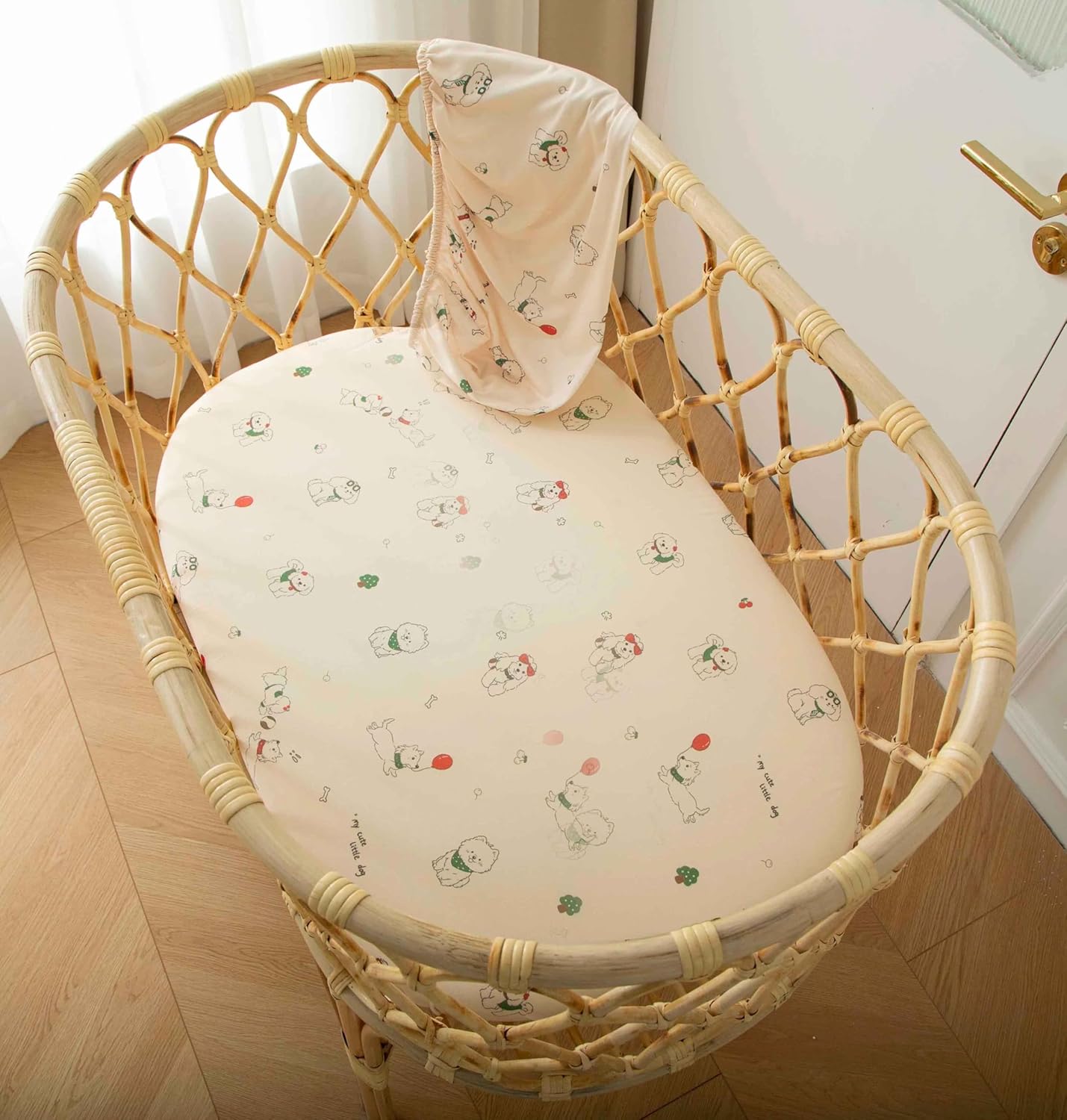 - 4.【Easy-care & Durable】: Our cozy bassinet sheets fit standard oval, rectangle, and hourglass bassinet mattresses. They're machine - washable, breathable, and quick - drying. Please Wash Before Use.