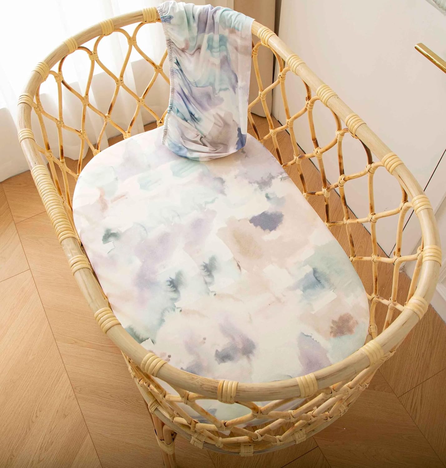 SDY Ink Soft Bassinet Sheets,Microfiber Jersey Bassinet Fitted Sheets for Boys Girls Set 2 Pack,for Rectangle, Round, Oval, Hourglass Mattress