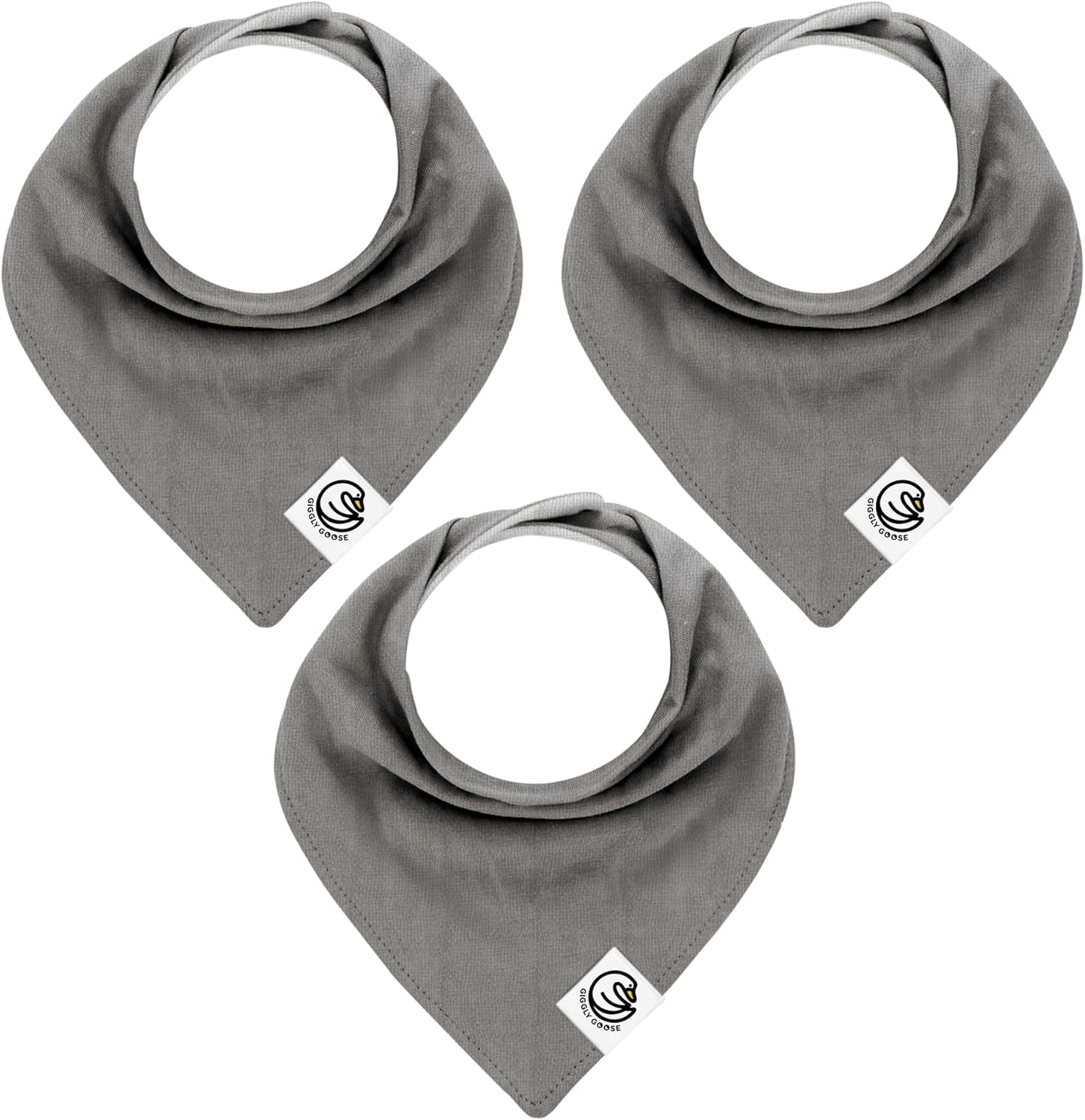 Premium Baby Bibs โ 3 Pack for Boys & Girls | Natural Cotton, Super Absorbent Drool & Teething Bibs with Adjustable Snaps - Grey Bandana Bibs