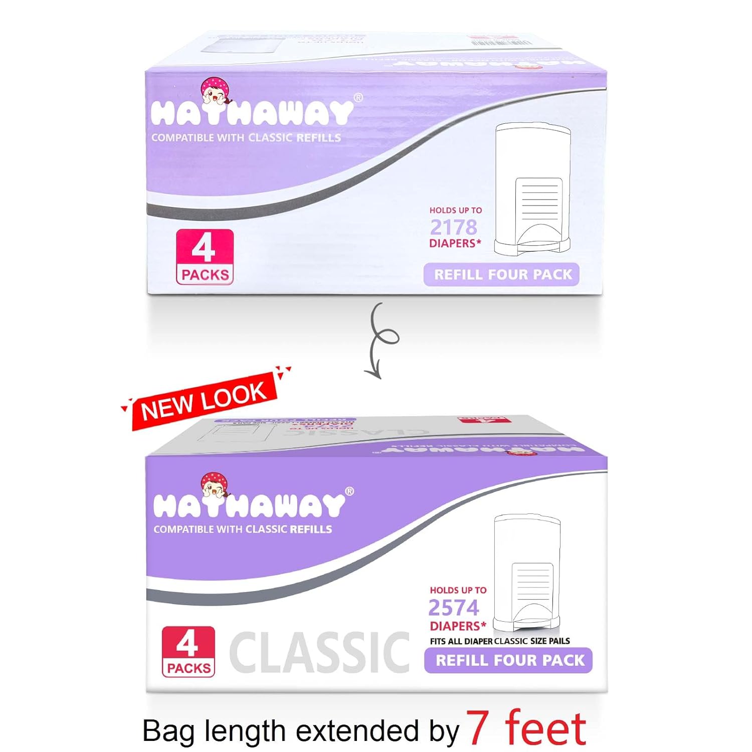 Diaper Pail Refill Bags Compatible with Dekor Classic Diaper Pail, Extra 30% Length, Hold up to 2574 Diapers, Lavender Scent, 4 Pack