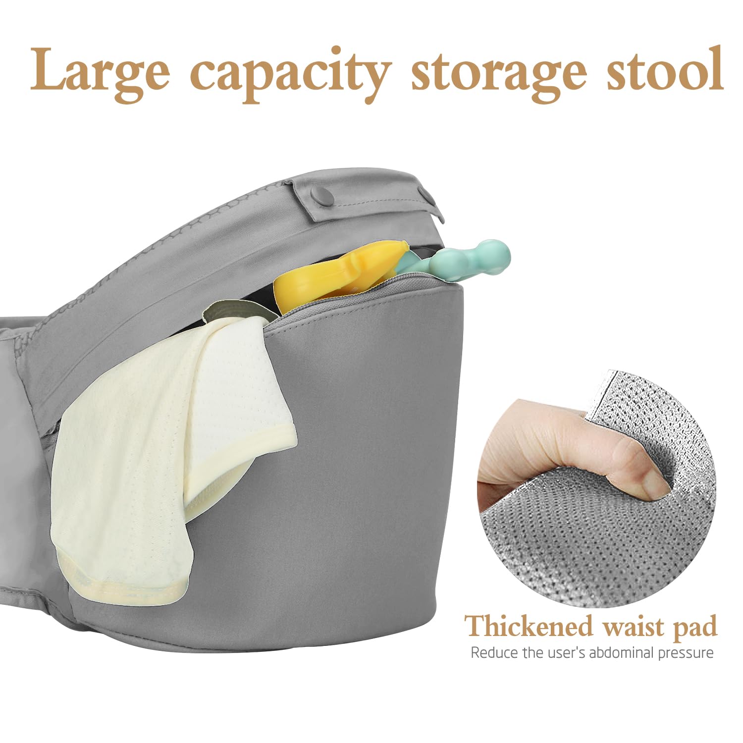 - CONVENIENT DESIGN: The baby carrier has a variety of convenient and personalized designs. Pockets on both sides of the waist are convenient for storing milk bottle, phone, keys, etc.