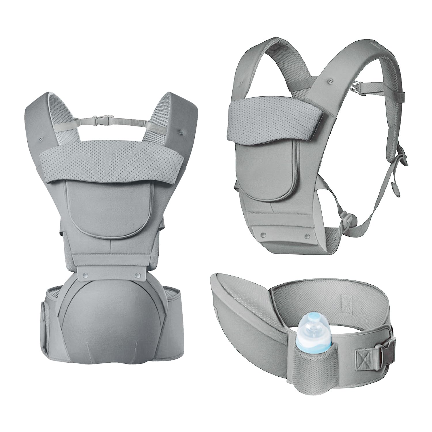 Baby Carrier Newborn to Toddler,12 in 1 Baby Holder Carrier with Adjustable Waist Belt,Baby Carrier with Hip Seat,Safety-Certified Baby Hip Carrier with Foldable Neck Support Pod,Ergonomic-Grey