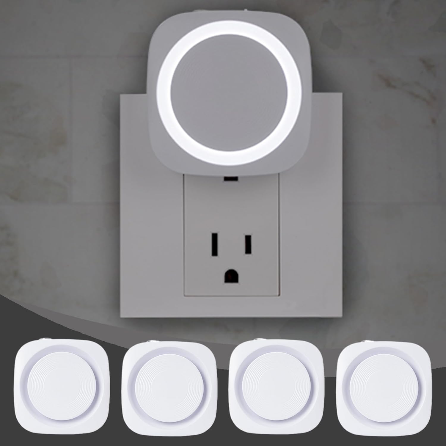 White Night Lights Plug in to Wall,4 Packs Dimmable Night Light with Auto Dusk to Dawn Sensor,Soft Glow Night Light for Bathroom, Bedroom,Hallway, Stairs, Kitchen,White
