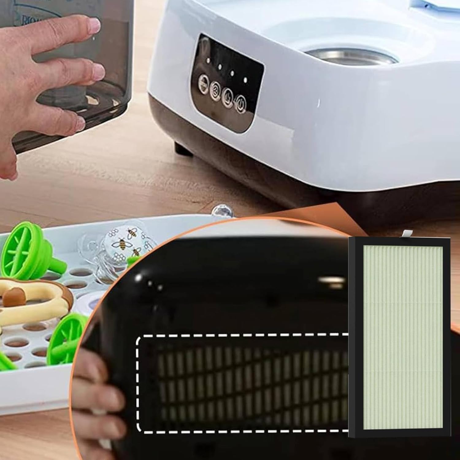 - Long Lasting: In order to improve the performance of the filter, replace your Baby Bottle Dryer Hepa filter every 4-6 months