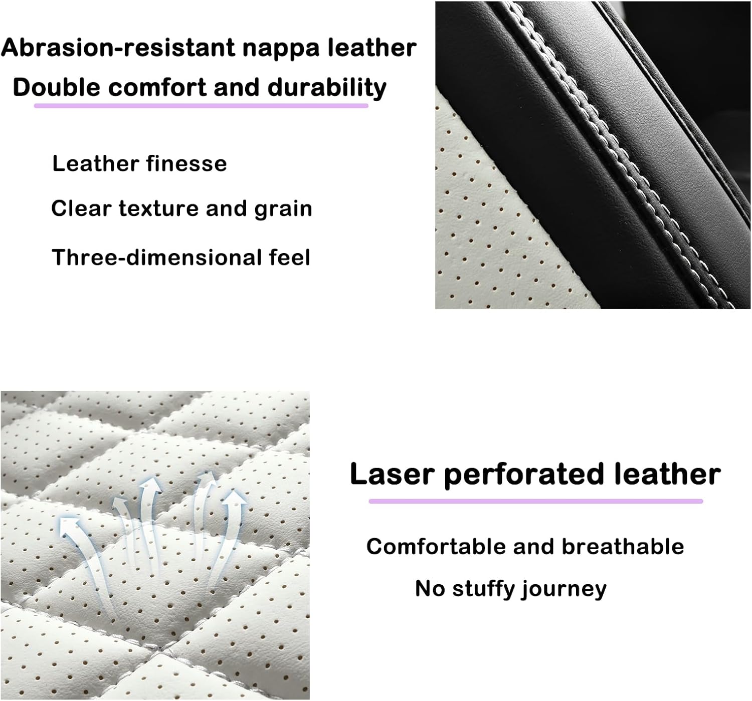 - 【High Quality Materials】The seat cover is made of high-quality NAPPA Leather, Effectively protects the original seats from wear and tear, stains, and UV damage, while enhancing the overall texture of the car interior.