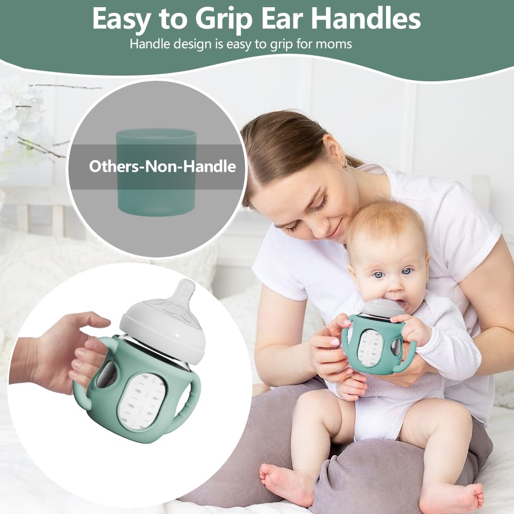 2 Pack Silicone Sleeves for Avent Natural Glass Baby Bottles, Anti Breakage Bottle Holder with Handle, Compatible Philips Avent Glass Natural Bottle 4 oz, Not for Infant Use