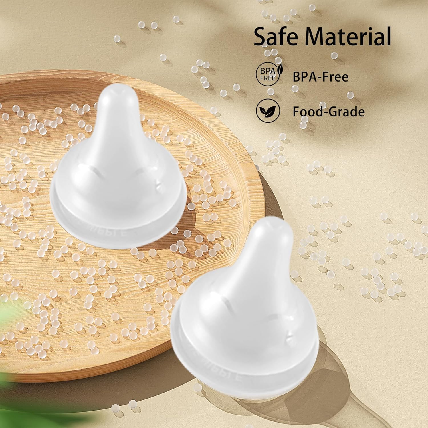 - Silicone Nipple: The nipple is made of food-grade silicone, which is super soft and allows the baby to suck naturally. There are air holes at the bottom of the nipple to balance the internal and external pressures, separate the milk from the air, and prevent the baby from inhaling too much air and causing colic and flatulence.