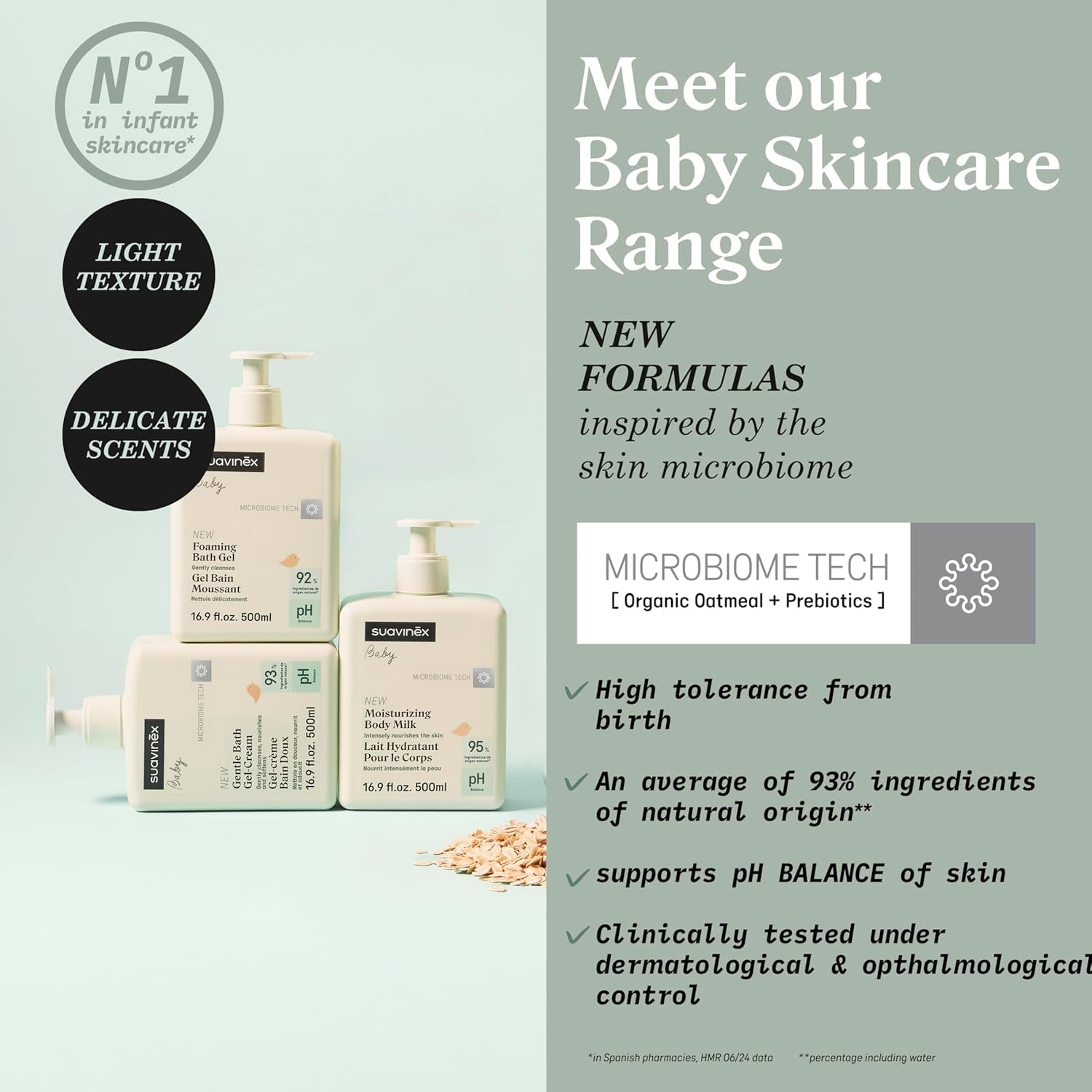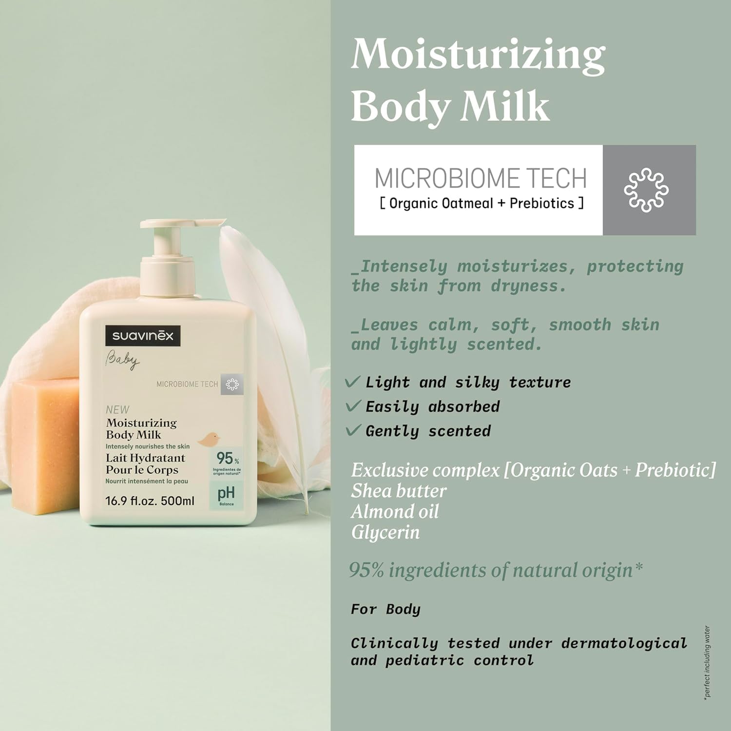 Suavinex, Moisturizing Body Milk Baby Moisturizer, Baby Lotion Suitable for Sensitive Skin and Newborns, Light Texture, Easy Absorption, 95% Ingredients of Natural Origin, 16.9 fl oz.