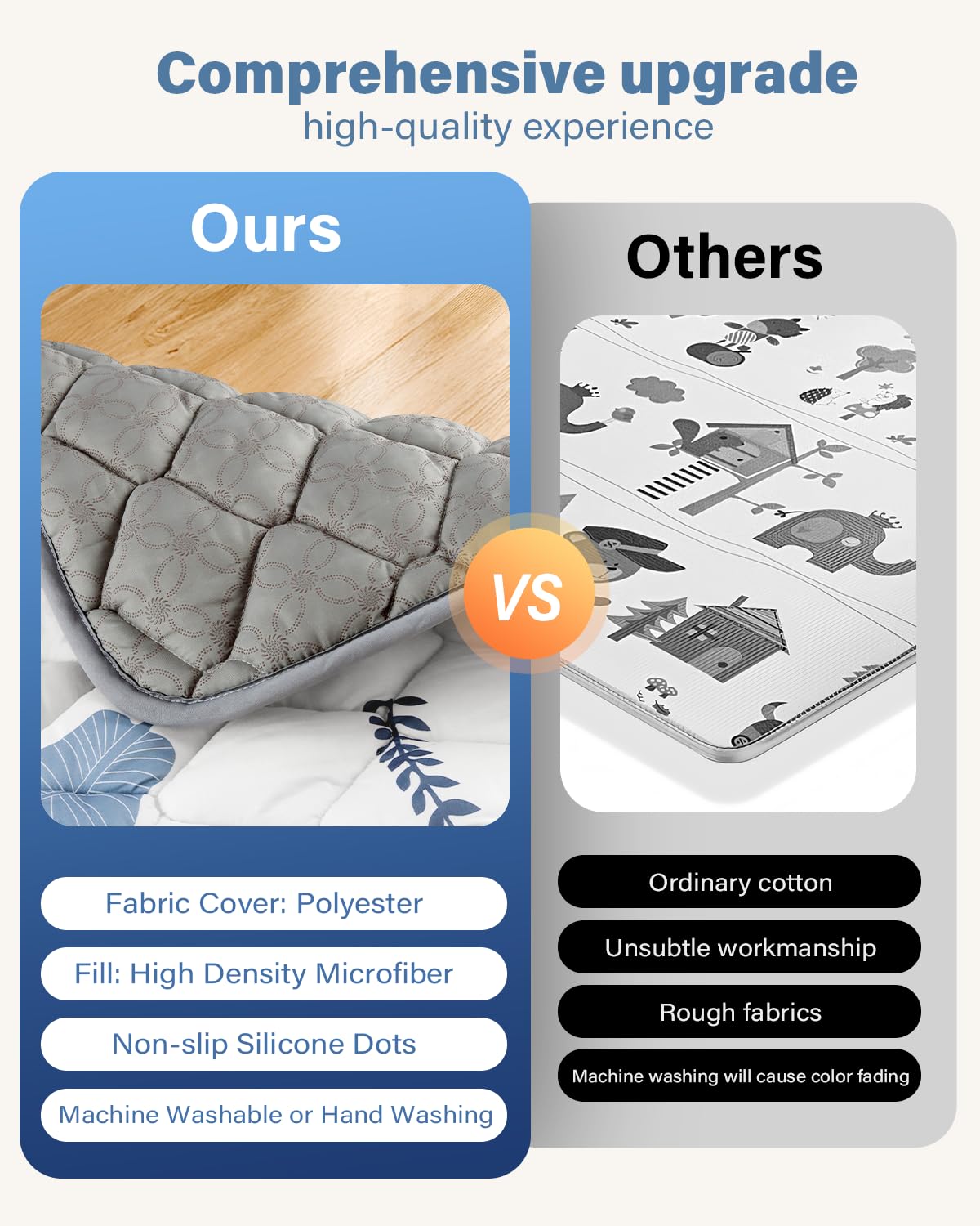 - 【Comfortable and Soft】 The baby play mat is made of super soft fabric and is filled with 690g of premium 100% polyester per square meter, making it very soft and comfortable. Provides pure comfort for baby crawling, rolling and playing