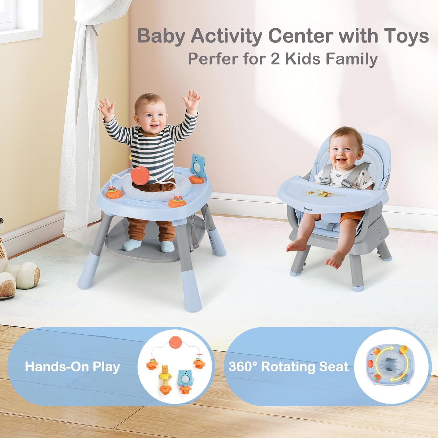 INFANS 9 in 1 High Chair, Convertible Baby Highchair for Babies and Toddlers, Table and Chair Set Building Block Infant Dining Booster Seat, Kids Stool with Activity Children Play Kitchen (Blue)