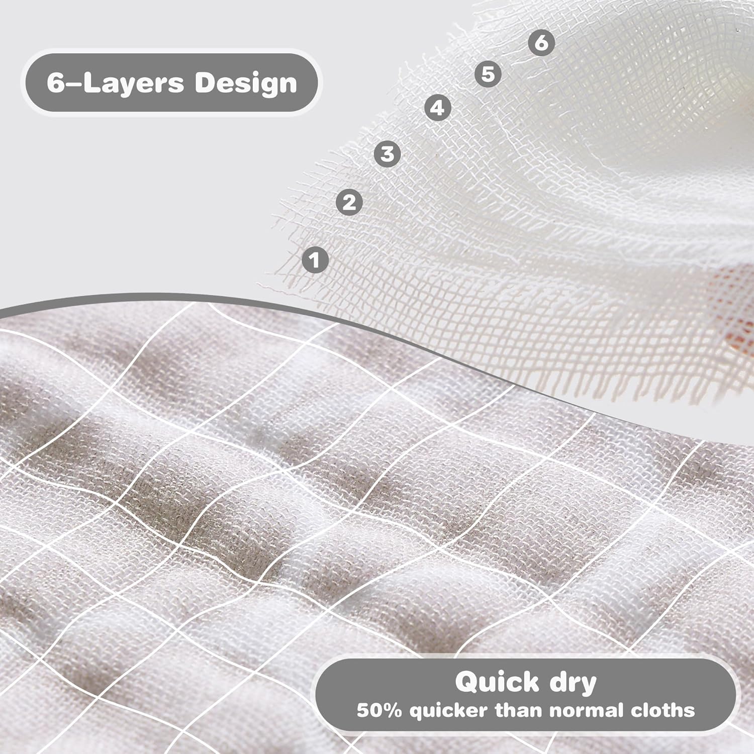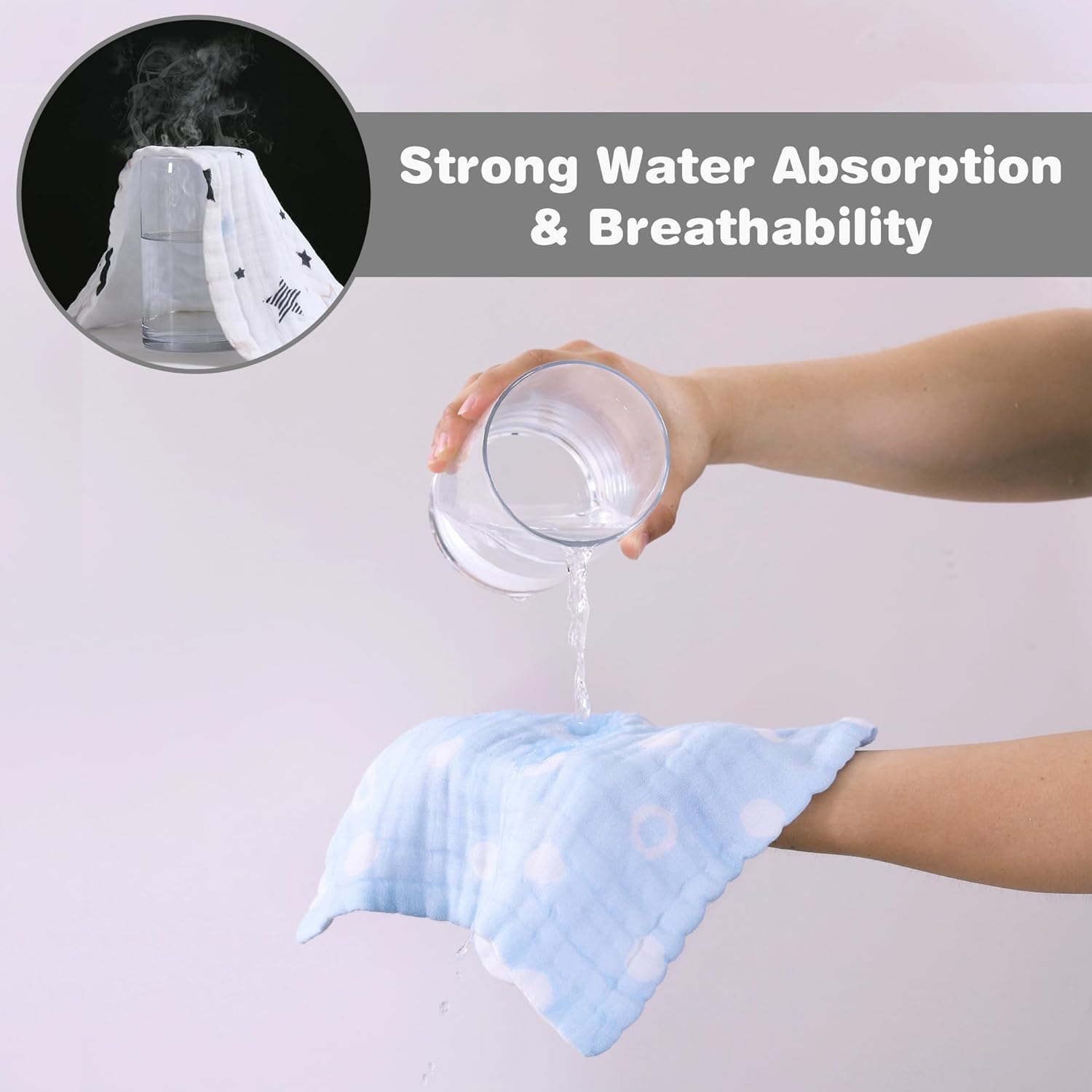- 【Strong Absorption】 Viviland baby muslin washcloths have 6 layers of cotton keeping kids' cloths and skin dry from shedding, teething, and drooling.