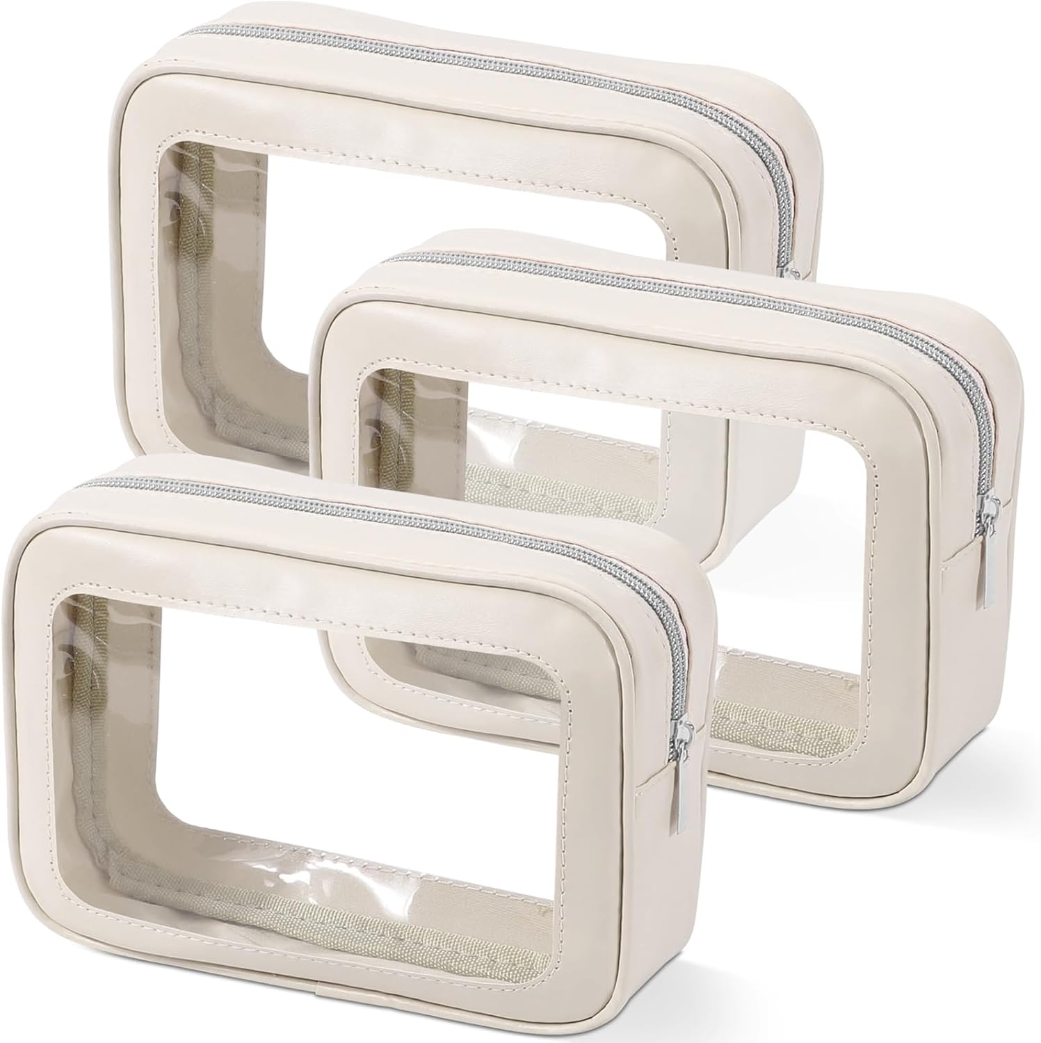 3PCS Clear Toiletry Bag,TSA Approved Travel Makeup Pouch with Zipper for Cosmetics and Toiletries,Diaper Bag Organizer Pouch Set,Women's Purse Organizer and Clear Car Bag