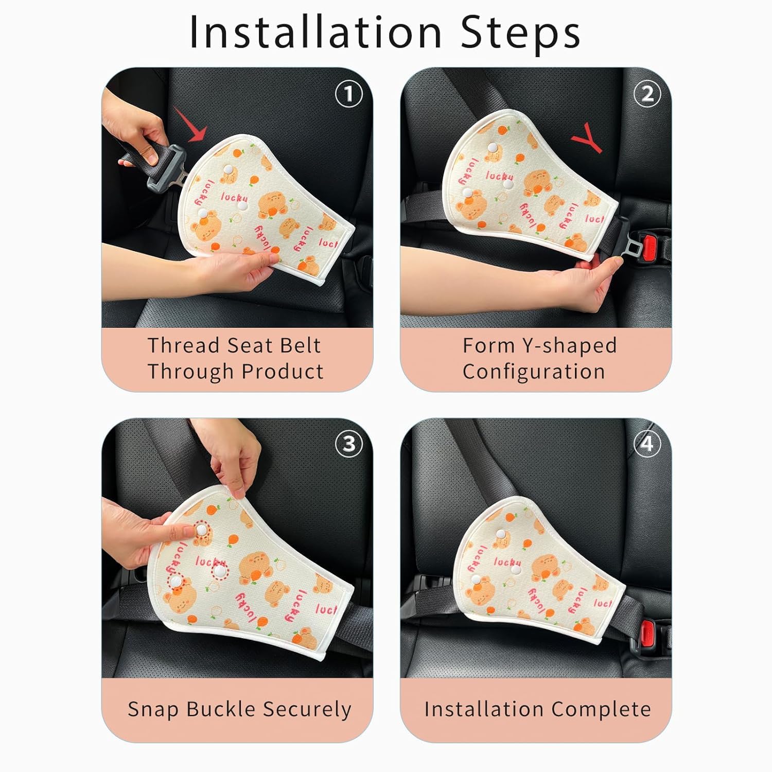 Seat Belt Cover Pad for Kids,Kid's Shoulder & Belly Cushion Protective Padding - Soft Breathable Straps Cushion Cover for Booster Seat, Strollers, and High Chairs(Luck Animal)