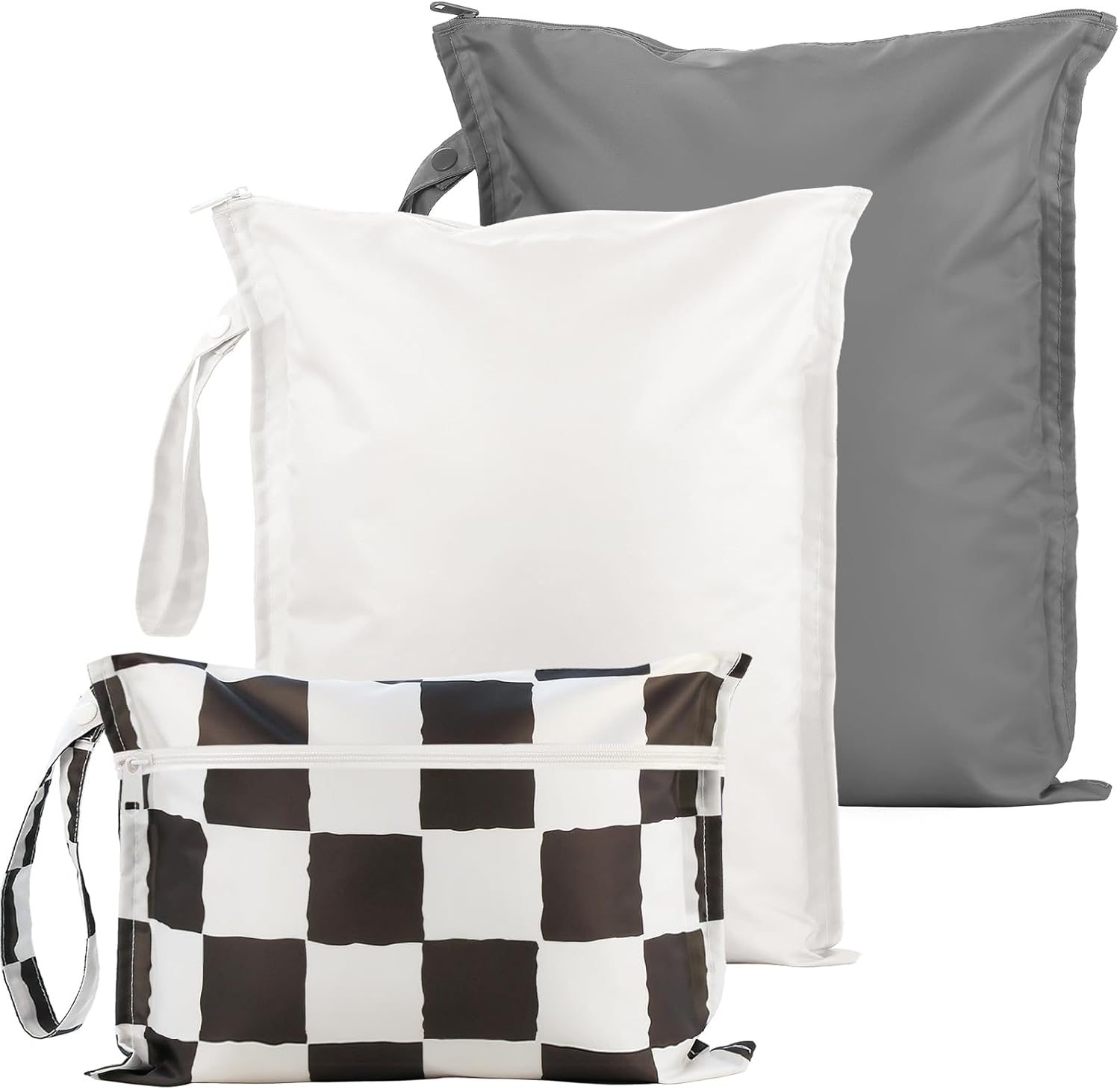 - Genuine Service, No Risk: You will receive 3-pack wet bags (Light Grey&Dark Grey&Small Black Checkers) in one package, The bigger measuring 15.7*12.6 inches,the smaller measuring 8.7*12.6 inches and can hold approximately 5-7 cloth diapers. If you have any problem with the product, please feel free to contact us, we will send you a new product or refund according to your choice.