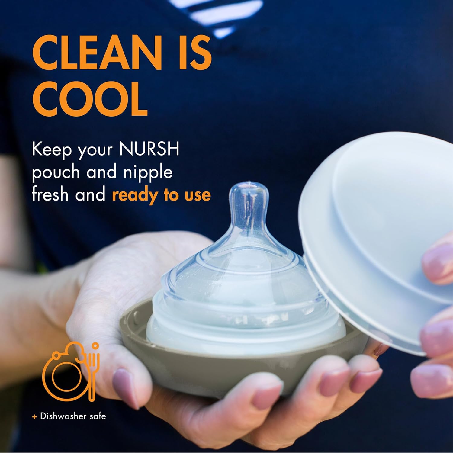 - Great on the Go: Nursh lids turn bottles into convenient storage containers for breast milk, formula, or homemade baby food and the Nursh buns keep an extra pouch and nipple clean in the diaper bag