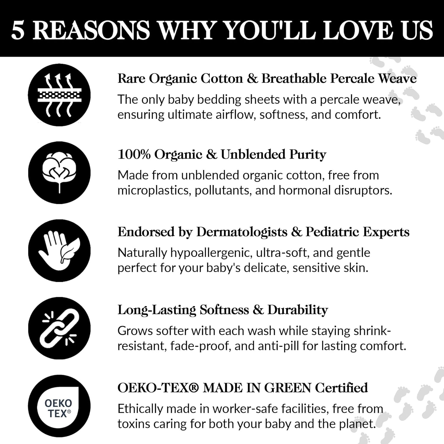 - 100% Organic & GOTS Certified: Crafted with pure love—these mini crib sheets fitted are breathable, safe, and baby-approved.