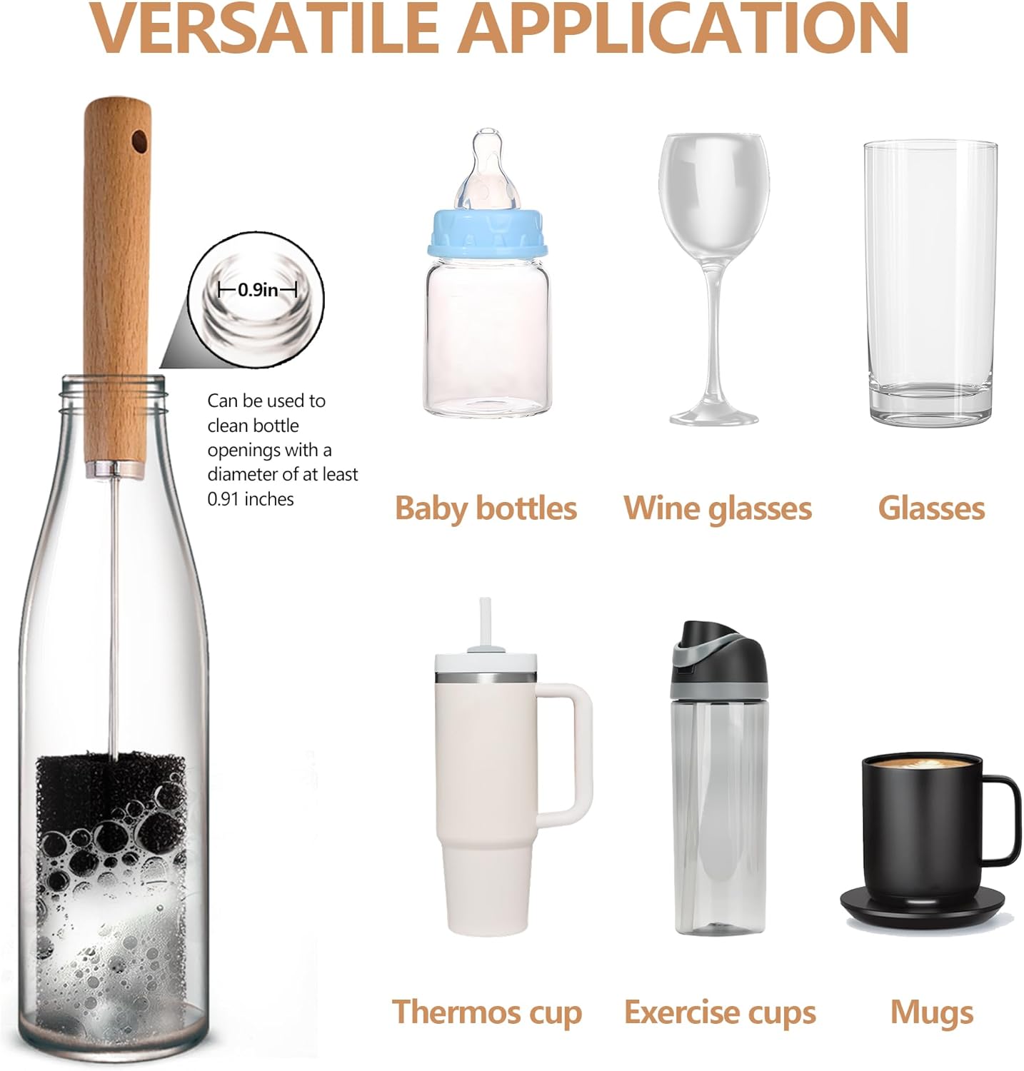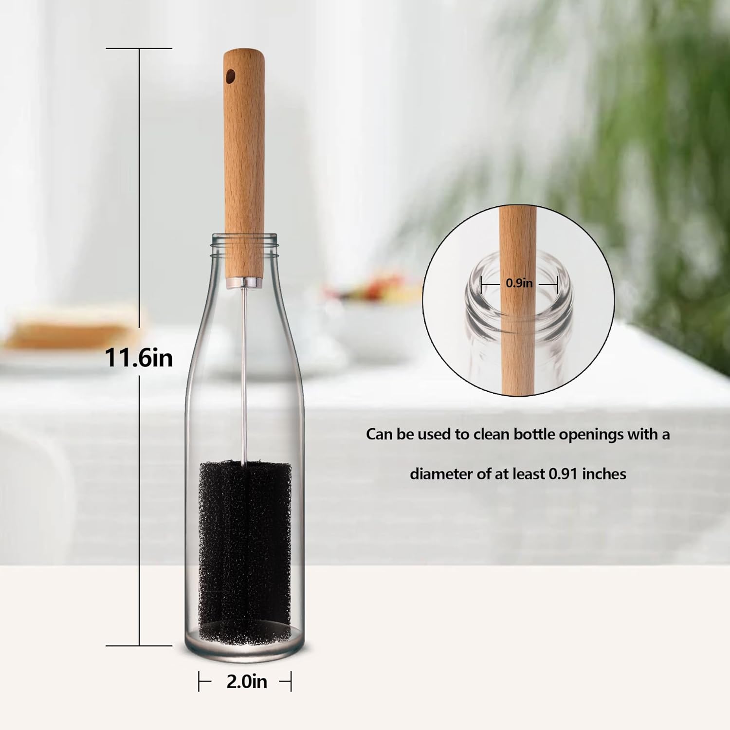 - Extended design: The extended wooden handle bottle brush can reach deep into the bottom of the bottle, fits tightly to the bottle body, and effectively cleans the dirt. The soft brush head will not damage the cup. The bottle brush can at least reach into the bottle with a mouth of 0.9 inches to clean. It can be hung for storage, convenient for draining, and saves space.