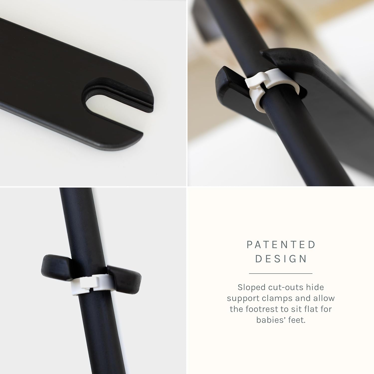 - ๐๐๐ญ๐๐ง๐ญ๐๐ ๐ ๐จ๐จ๐ญ๐ซ๐๐ฌ๐ญ ๐๐๐ฌ๐ข๐ ๐ง: Features sloped cut-outs on the underside that conceal the support clamps and position the IKEA high chair foot rest at a secure 90-degree angle to the highchair base, combining both function and aesthetics.