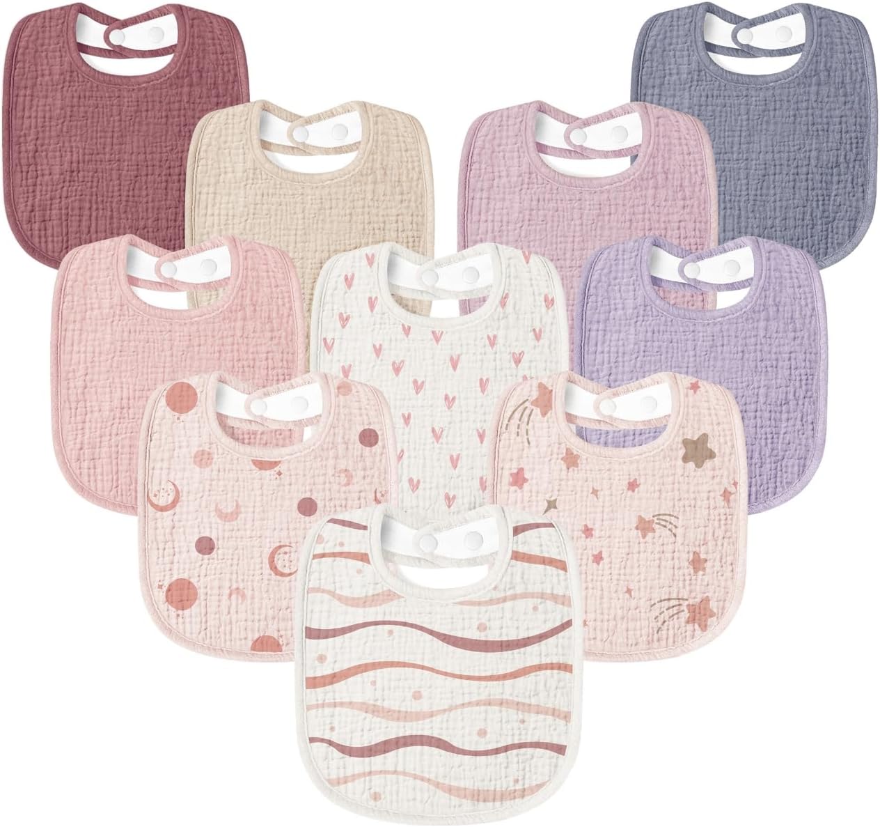- Soft & Superior Absorbency: Our Susurration Muslin Baby Drool Bibs are crafted from muslin cotton on the front, they are backed with water-resistant soft plush to ensure maximum absorption with a skin-friendly, gentle touch for your baby's skin. The dual-layered design ensures both you and your baby remain free from wet clothes all day long.