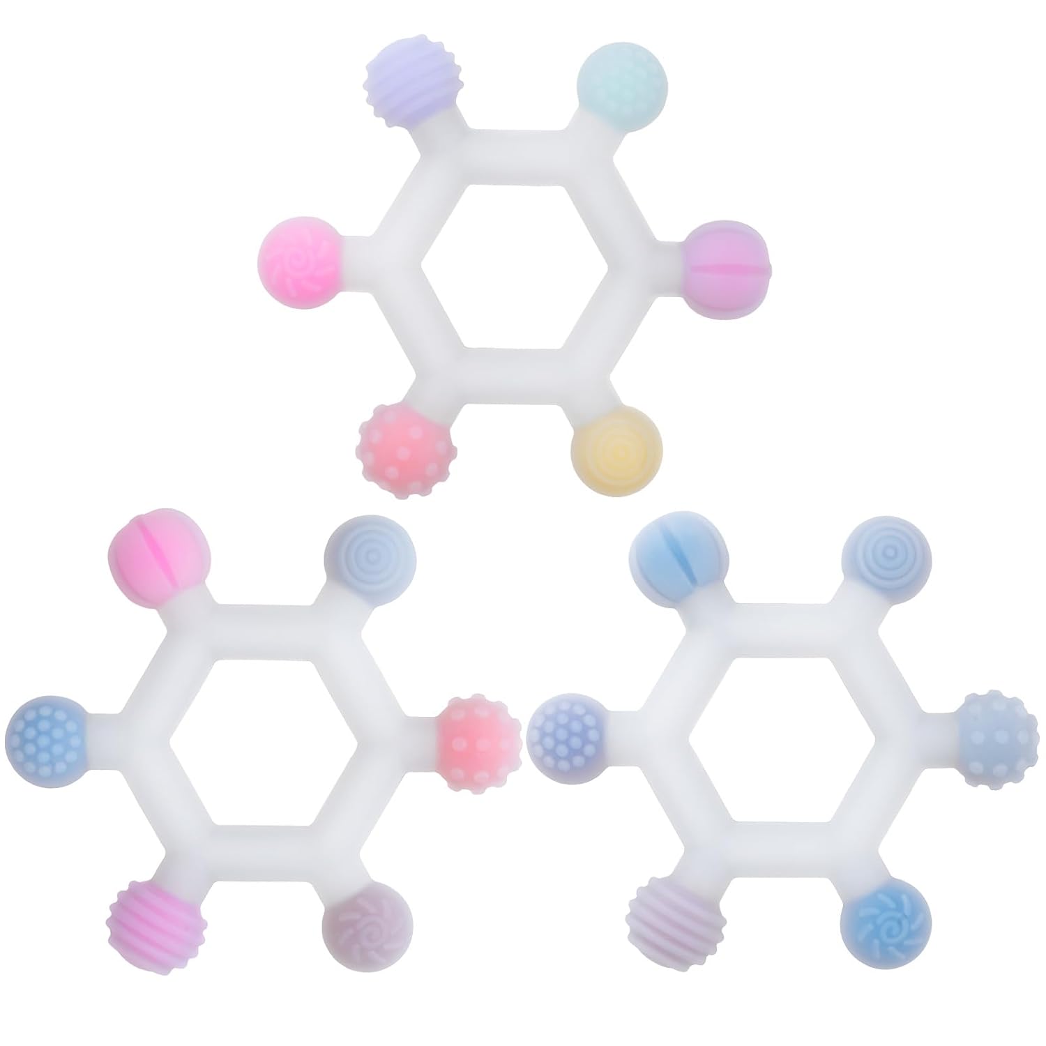 3 Pack Baby Teething Toys, BPA-Free Silicone Baby Teether Toys Teething Relief, Chew Toy for Babies 6-24 Months (Colorful)