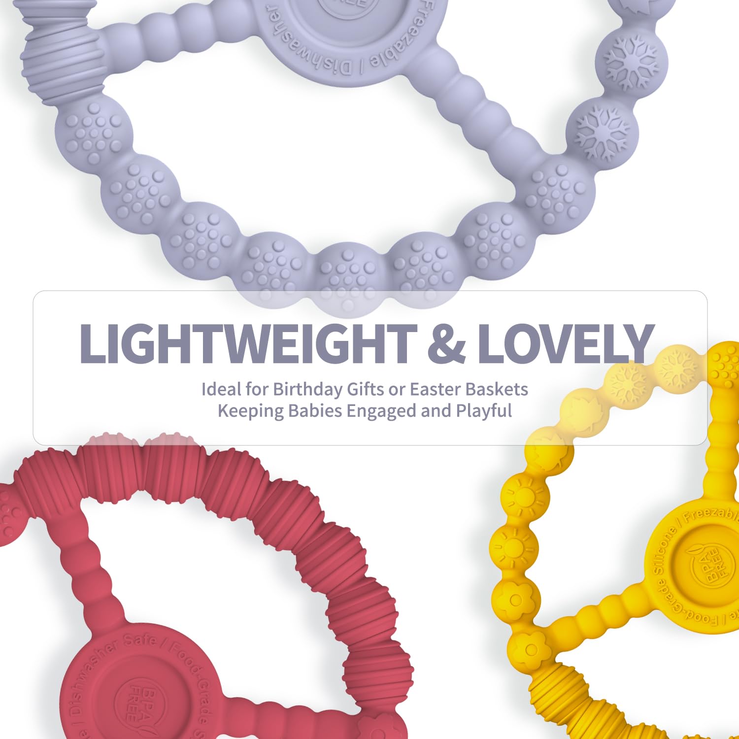 - Perfect Gift for Infants: These colorful teether toys are for baby boys & girls aged 0-18 months. Perfect for baby shower gifts, birthday presents or Easter teether gifts, they support cognitive development while providing essential teething relief.