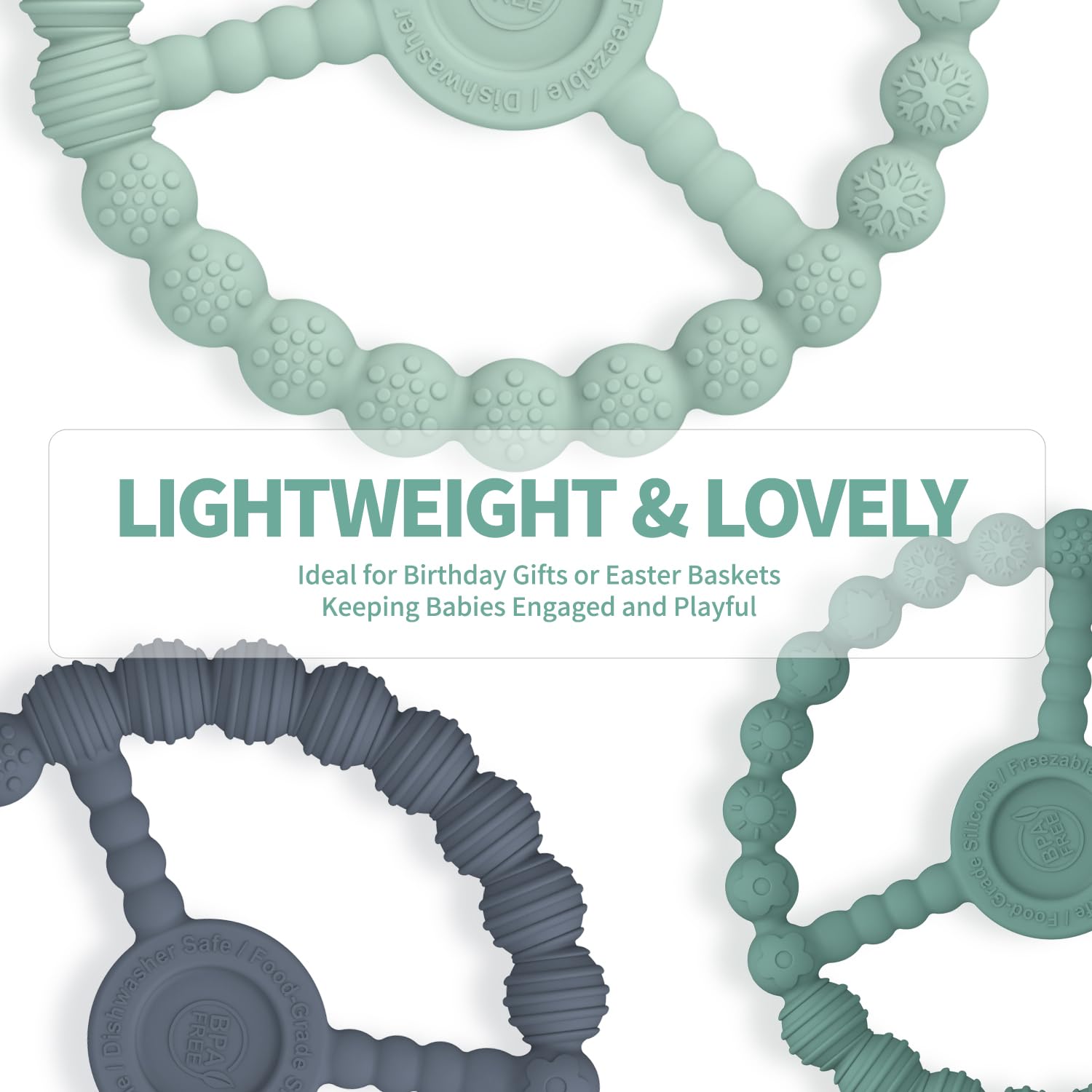 3 Pack Baby Teething Toys 3-6 Months, Silicone Ring Teethers for Babies 6-12 Months, Freezer Safe Chew Toy with Textured Grip for Boys Girls Teething Relief, Infant Easter Gift (Mint Green Blue)