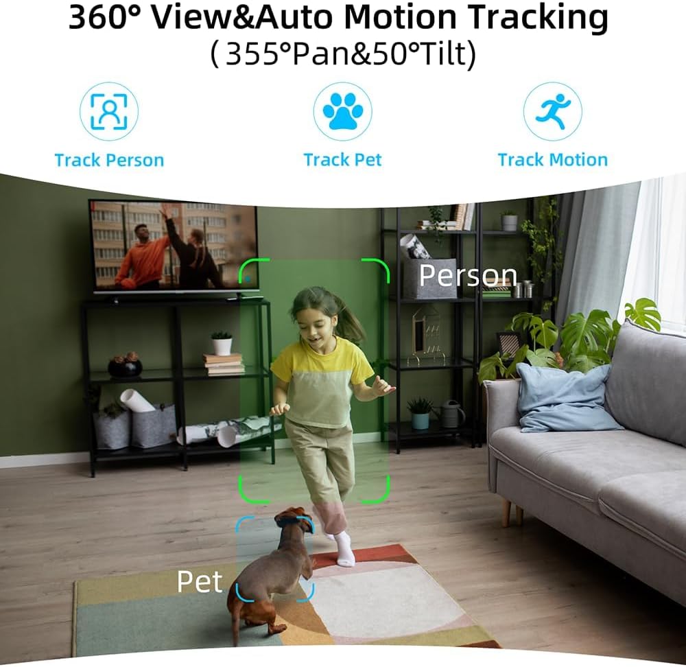 Rraycom 2K Pan/Tilt Security Camera for Baby Monitor, 5G Dog Camera w/Motion Detection&Crying Detection, 2-Way Audio, Siren, Night Vision, Motion Tracking,Cloud & SD Card Storage, Works/Alexa,3Pack