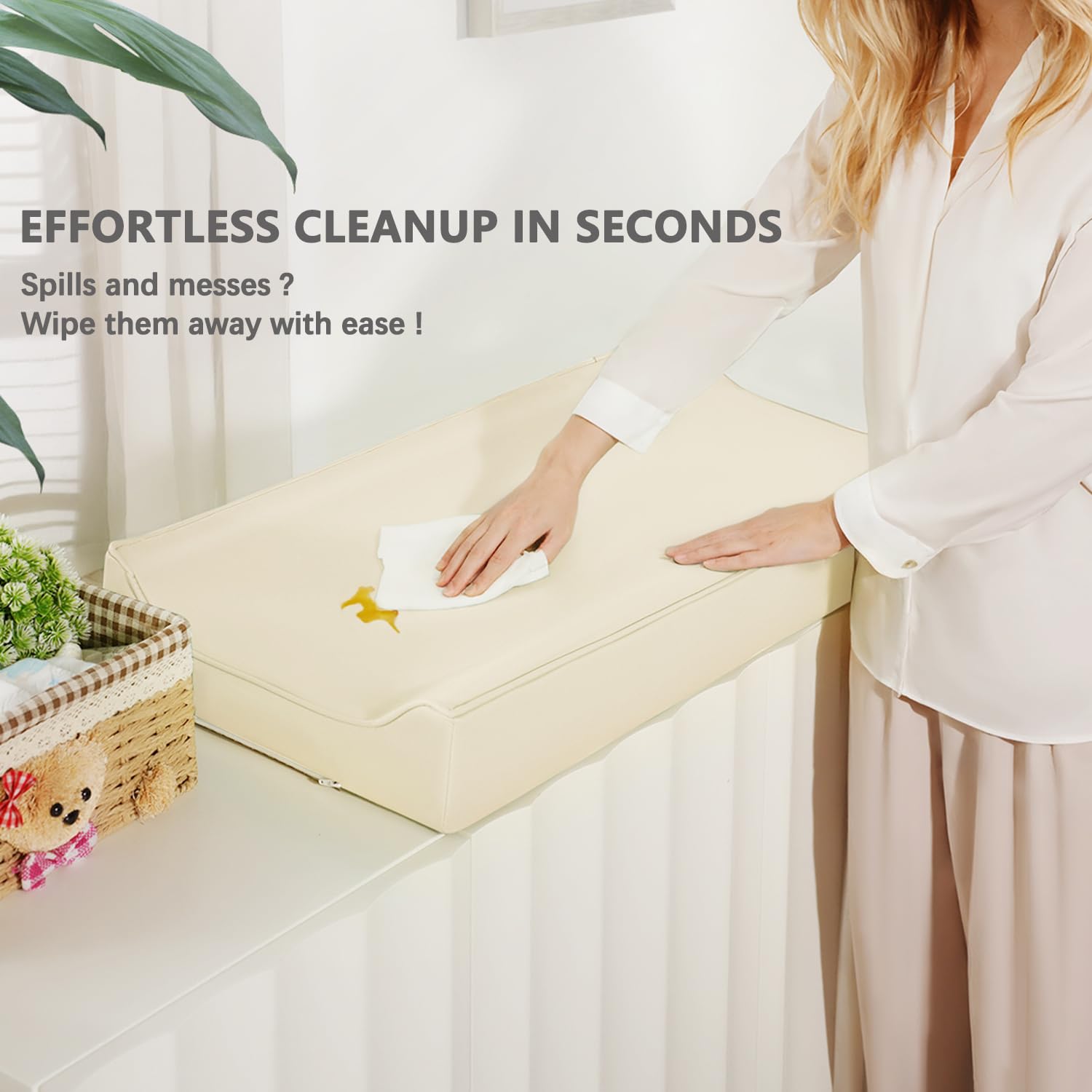 Vegan Leather Changing Pad Cover with Zipper - 31"X 16" - Waterproof Wipeable, Extra Thick & Portable & Non-Slip Diaper Mat - Fits Standard Changing Tables (White)