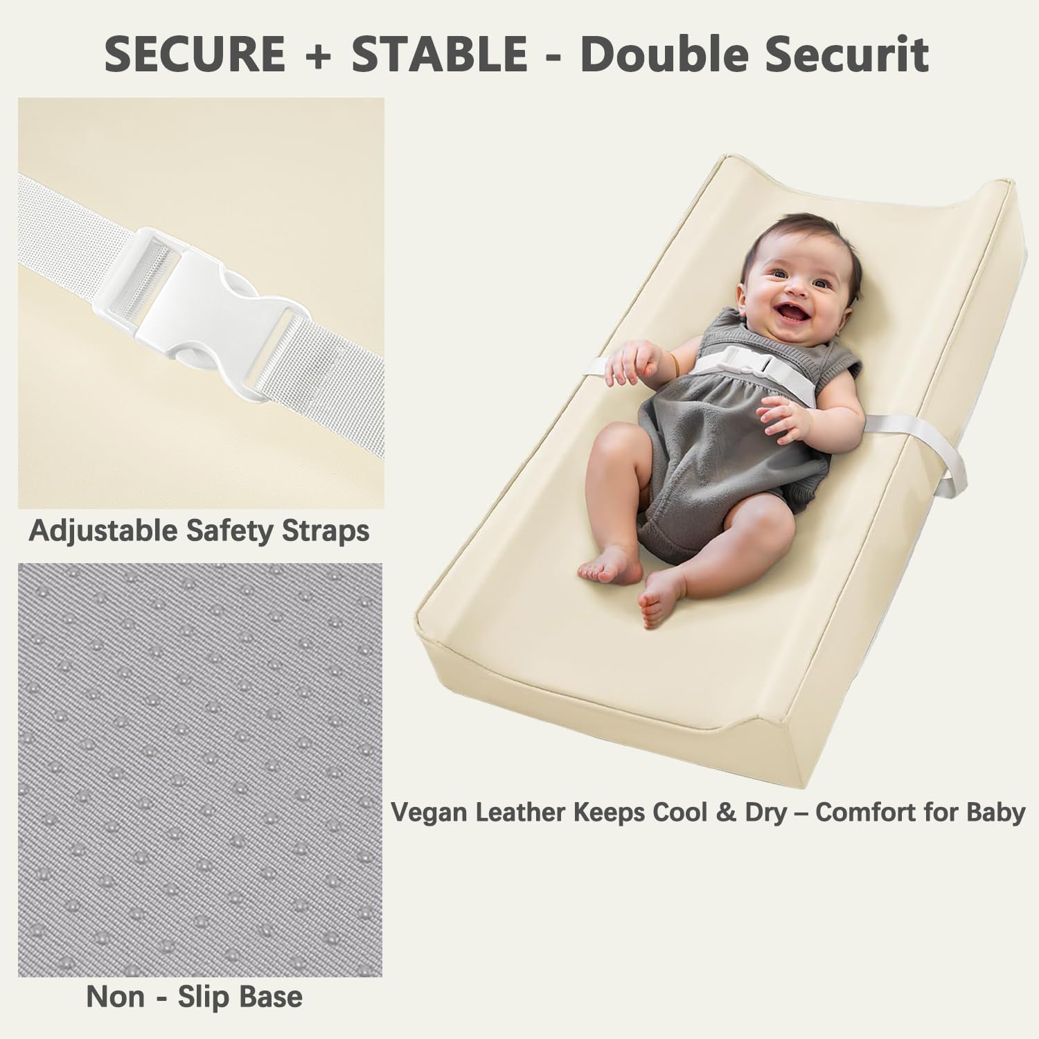 - Double Safety Protection: Equipped with adjustable safety straps and a non-slip base, our changing pad covers ensure your baby stays safe and secure. The straps can be tailored to fit your pad tightly, and the anti-slip design prevents unwanted sliding, giving you peace of mind during every change.
