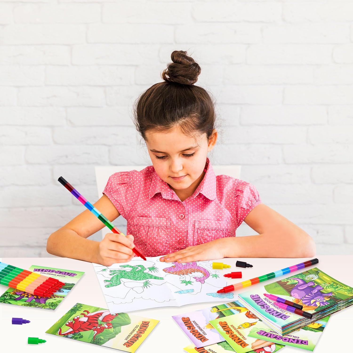 - Suitable Size: each dino coloring book bulk for kids measures about 6.7 x 4.7 inches, which is a good size for kids' little hands. Easy to carry, you can take it outdoors, school, birthday party, travel,picnic and play with friends.The total length of crayons with a transparent cap is 7.1 inch, you can change the position of color and crayons length by yourself