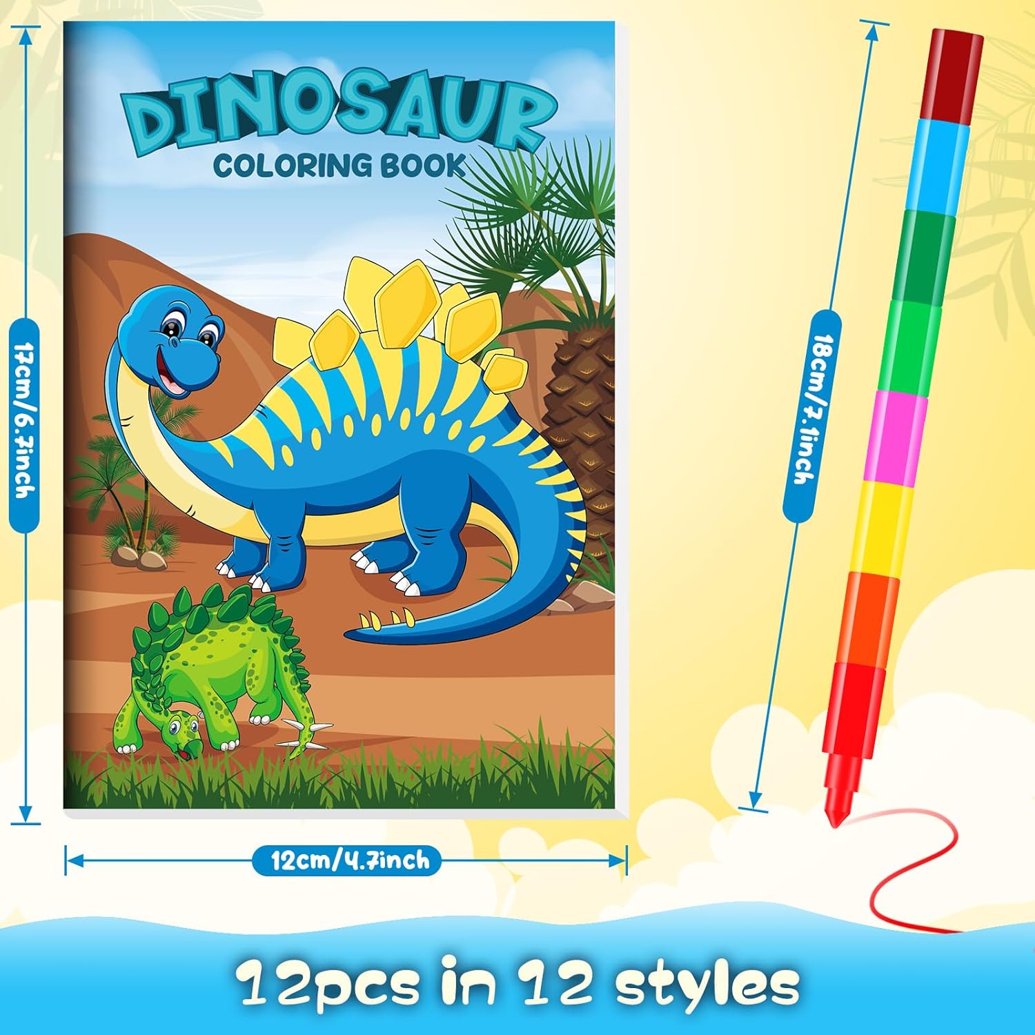- Package Include: you will get 12 pieces of dinosaur coloring books bulk and 12 pieces of stacking crayons.The quantity is enough to meet your DIY needs, kids will be very excited to see mini coloring books, color it right away, let your kids play all day long