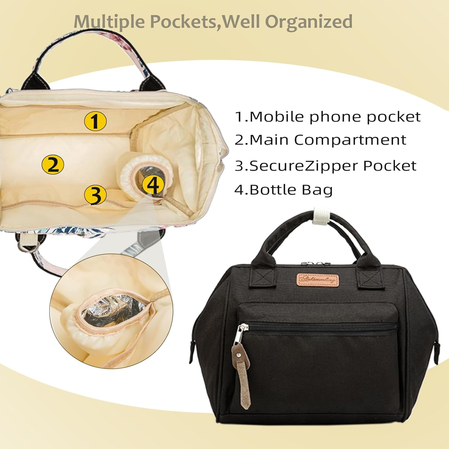 Small Diaper Bag-Mini Diaper Bag Backpack Crossbody Baby Diaper Tote Bag with Insulated Pocket(Black)