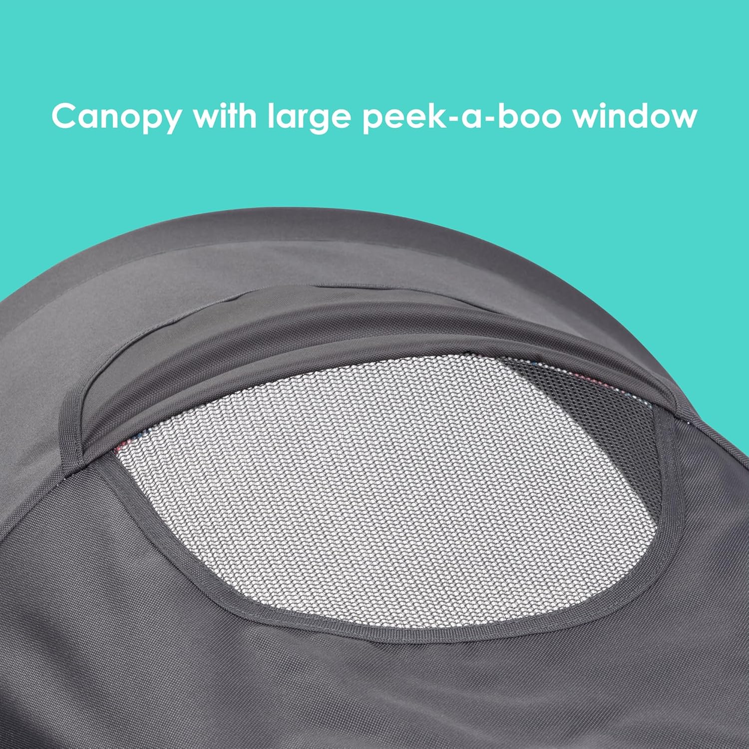 - Parent tray with 2 cup holders & center storage cover; Swing away child tray with large 2 cup holders; Large basket with wide rear access