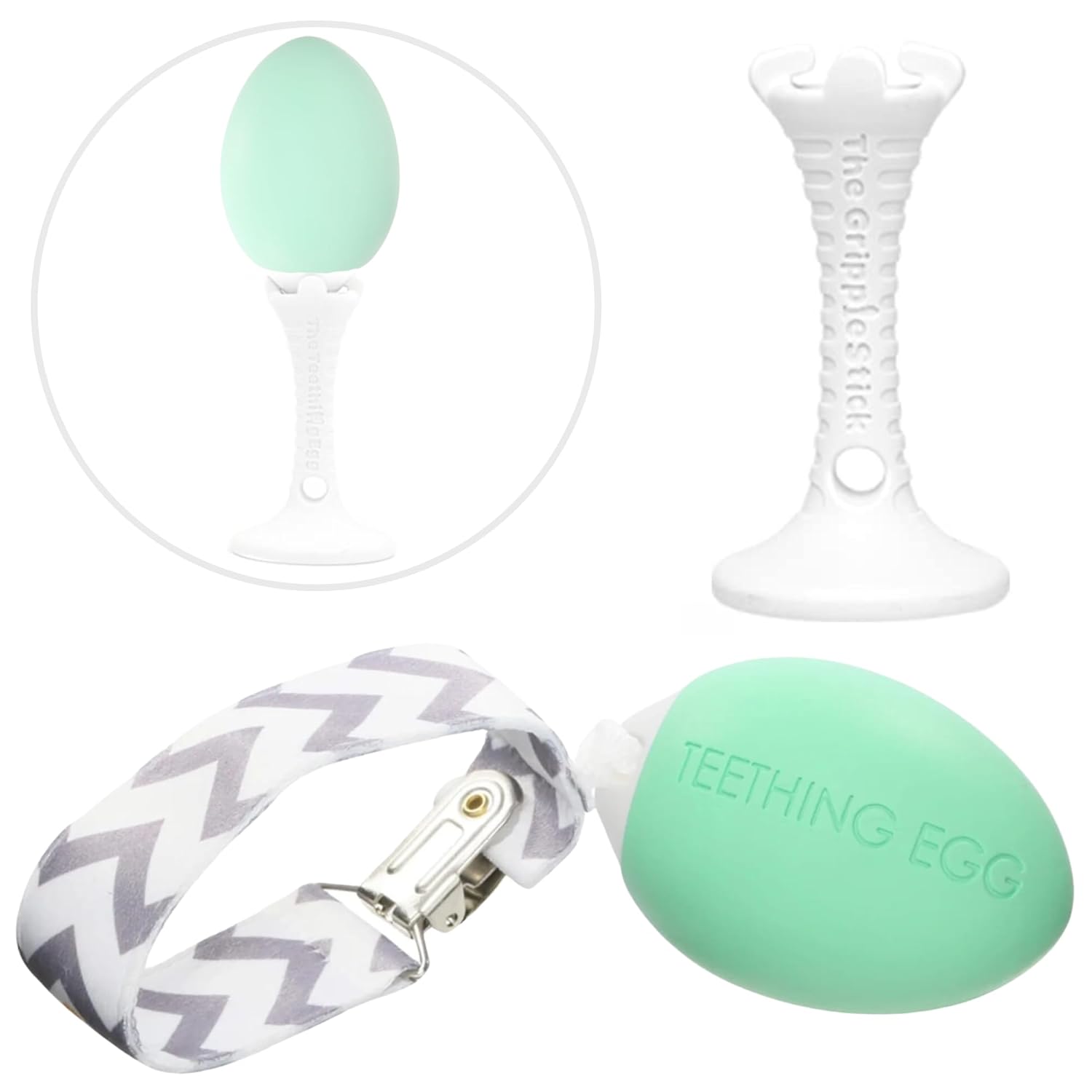 The Teething Egg and Grippie Stick - Baby Development Teething Toys 3, 4, 6, 12 Up to 18 Months Old Boy or Girl, Sensory Toys, A Baby Registry Must Have Teether, Mint